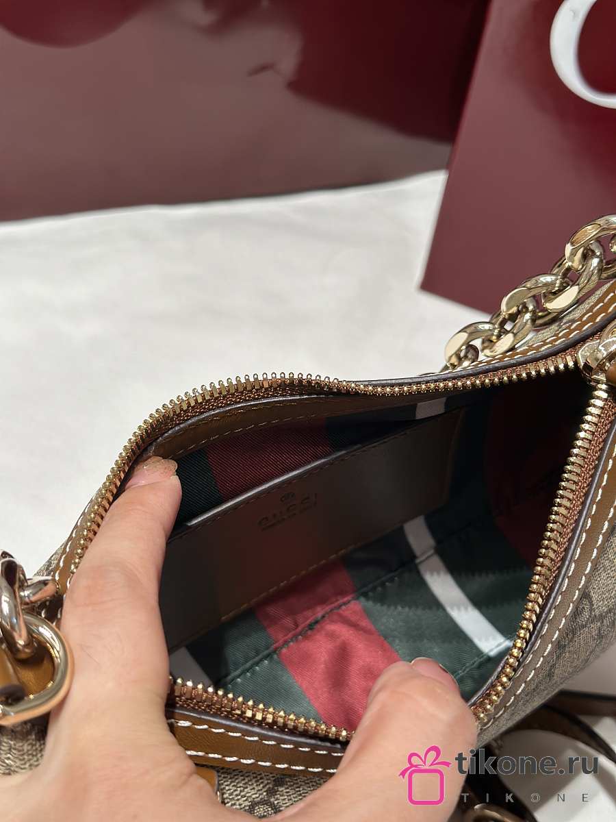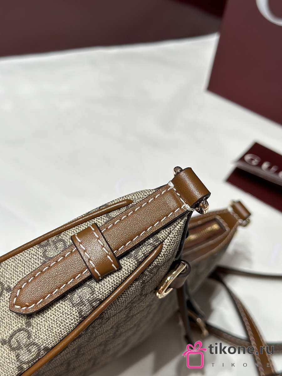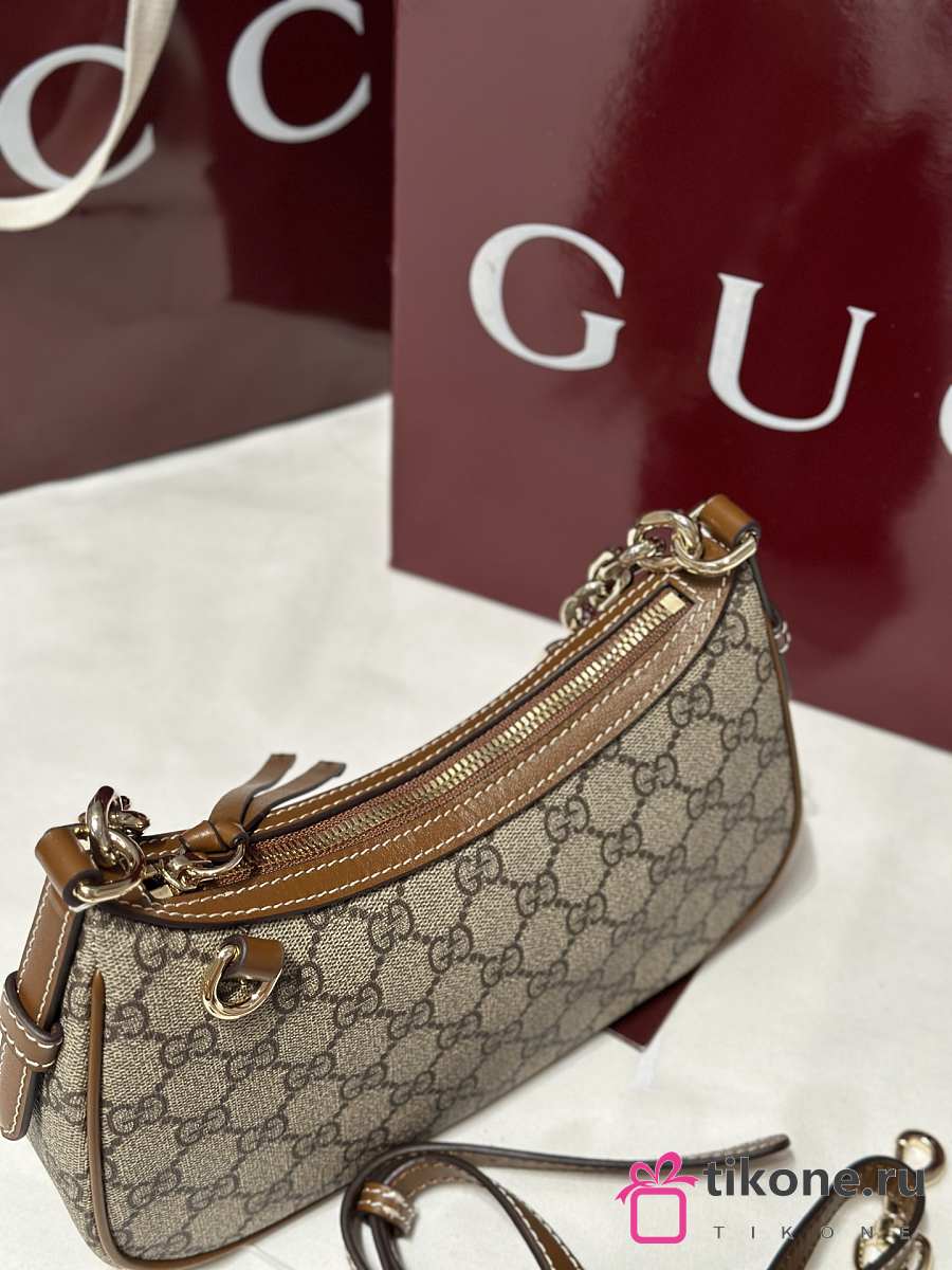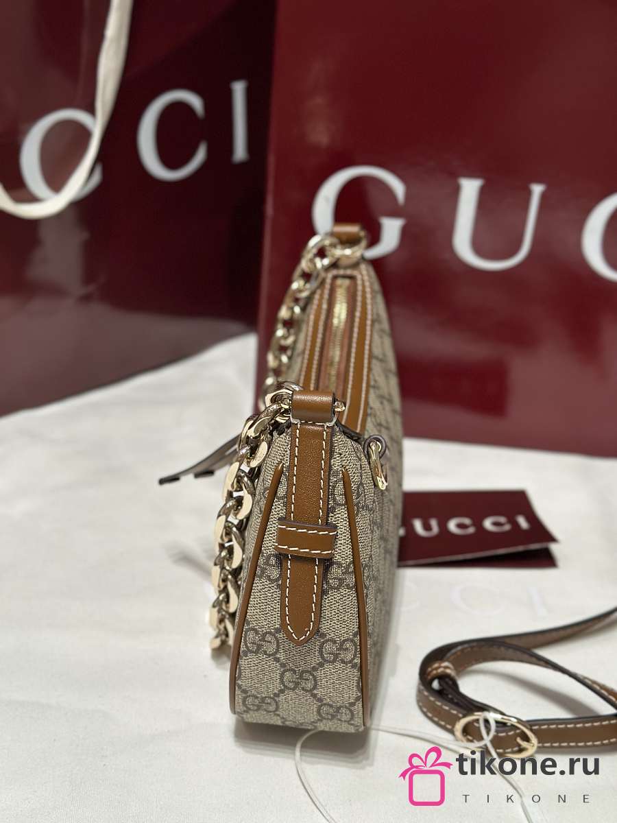Gucci GG Emblem Small Shoulder Bag In Beige And Dark Brown Fabric - 24x16.5x5.5cm