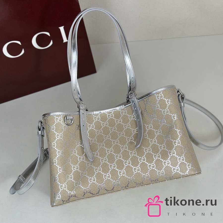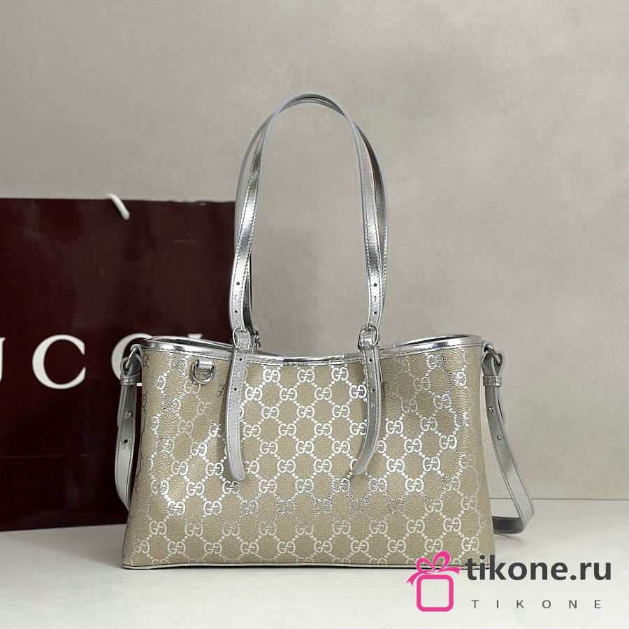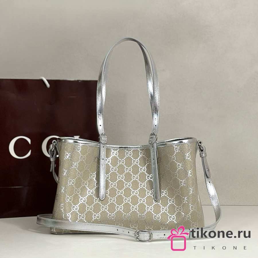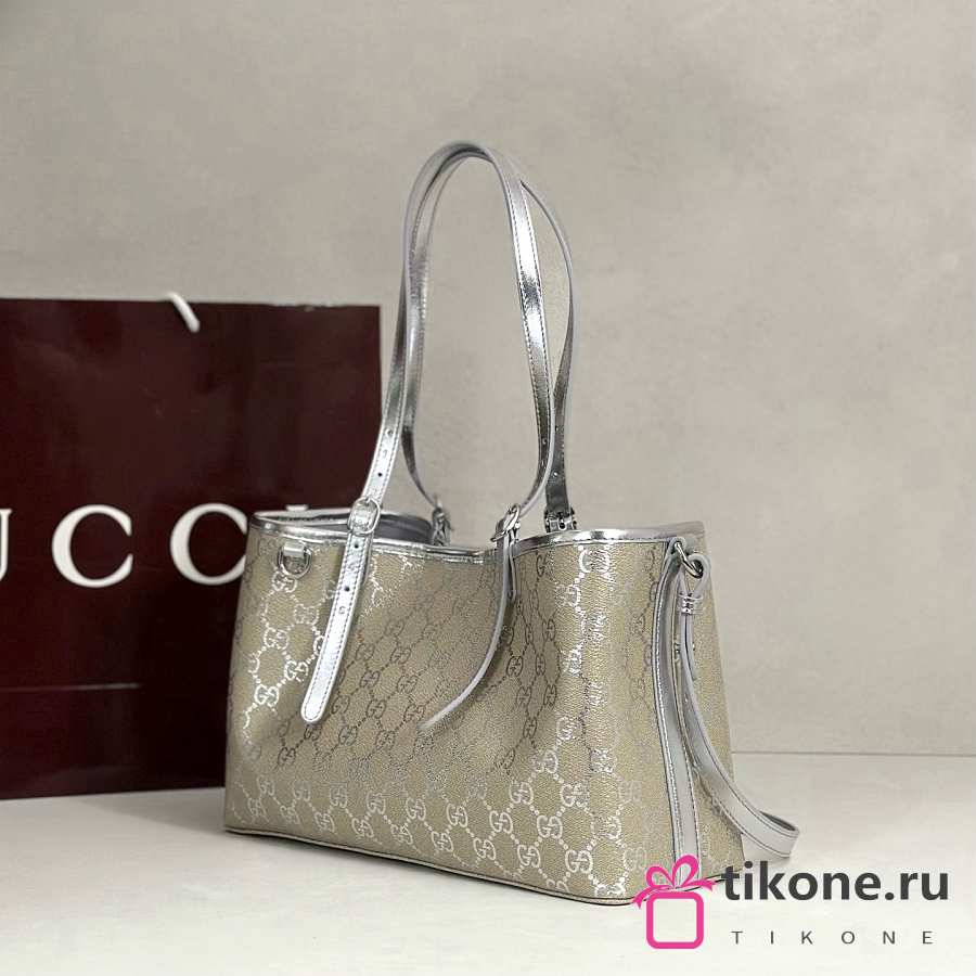 Gucci GG Emblem Small Tote Bag Silver - 31x18x11cm