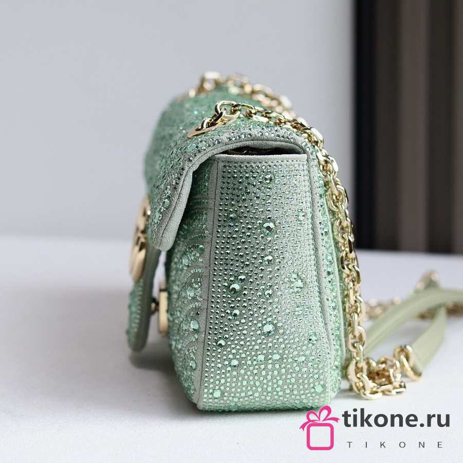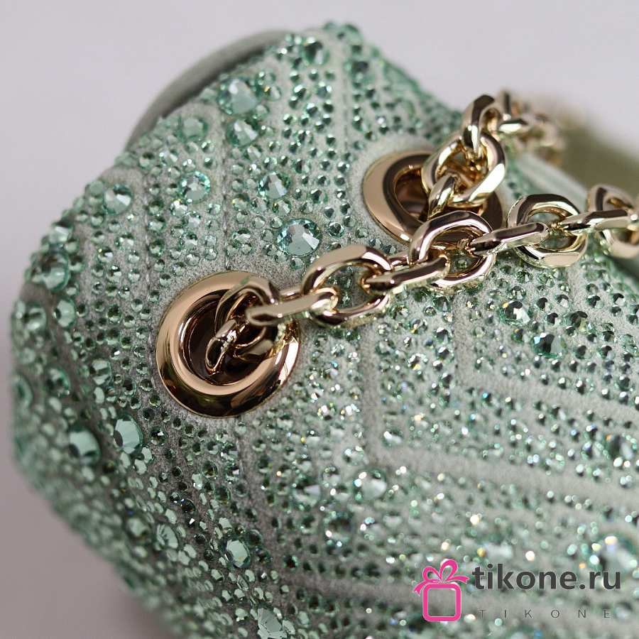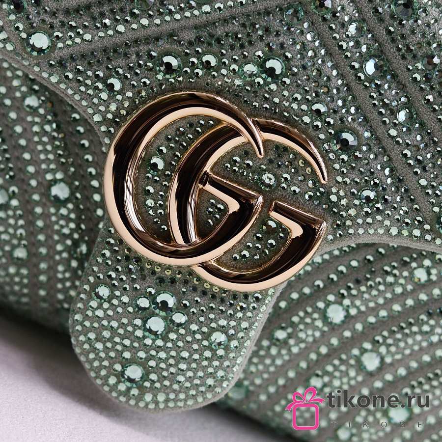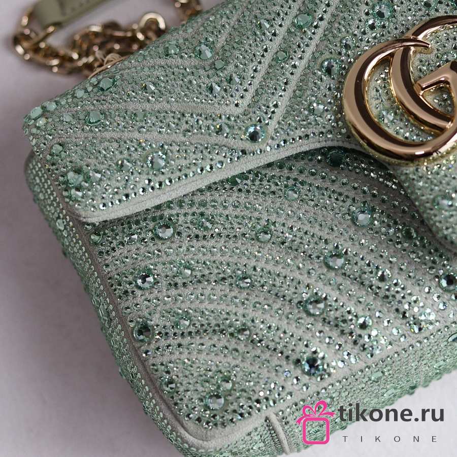 Gucci GG Marmont Crystals Small Shoulder Bag Pale Green Nubuck Leather- 26x15x7cm