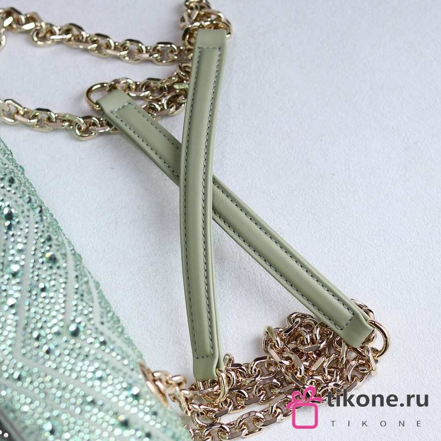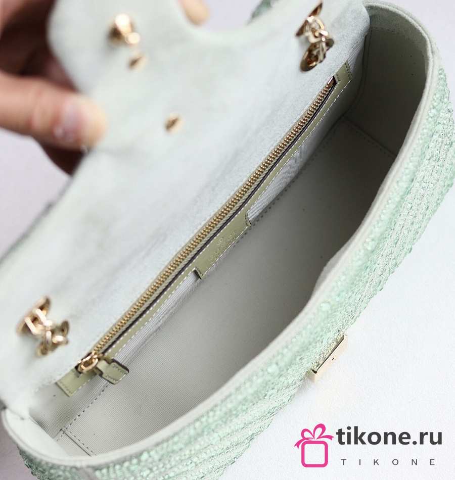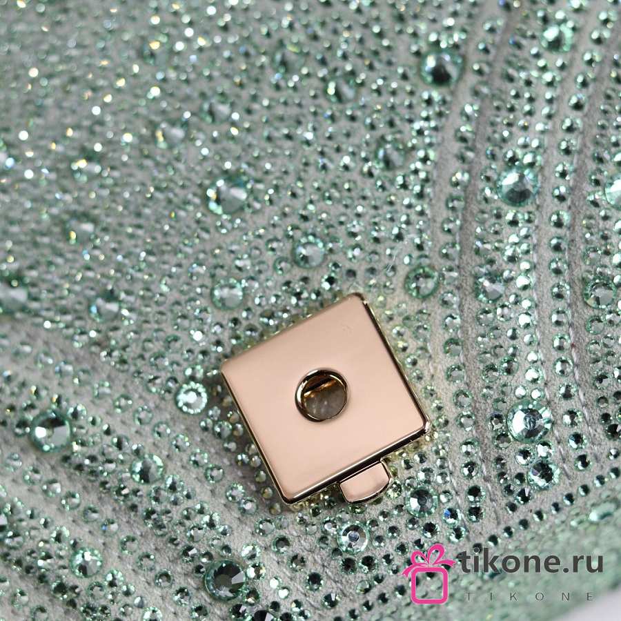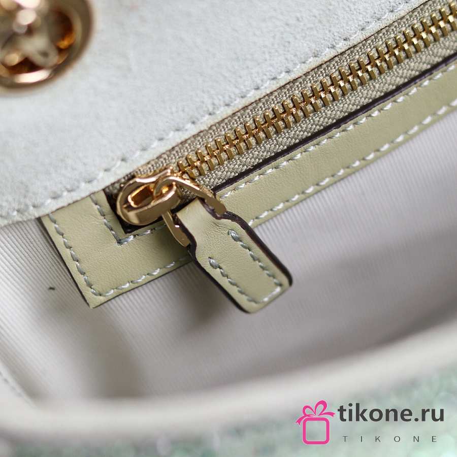 Gucci GG Marmont Crystals Small Shoulder Bag Pale Green Nubuck Leather- 26x15x7cm