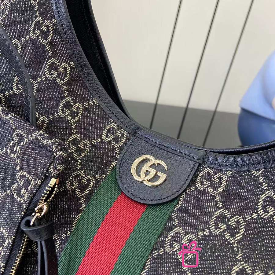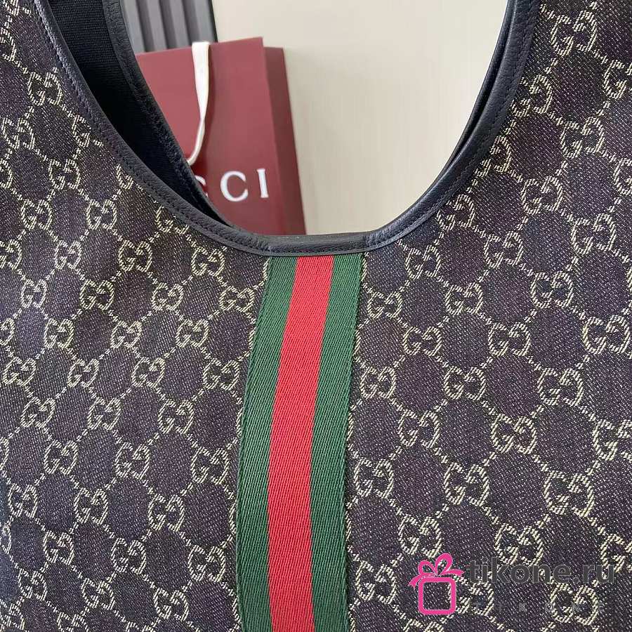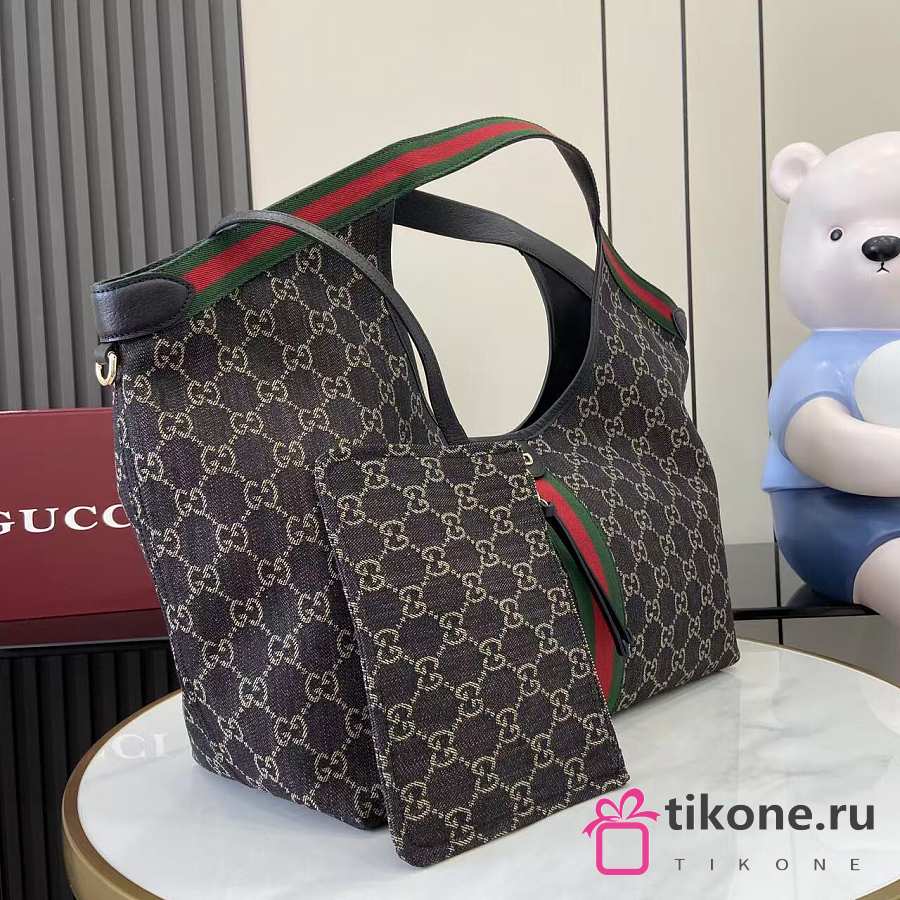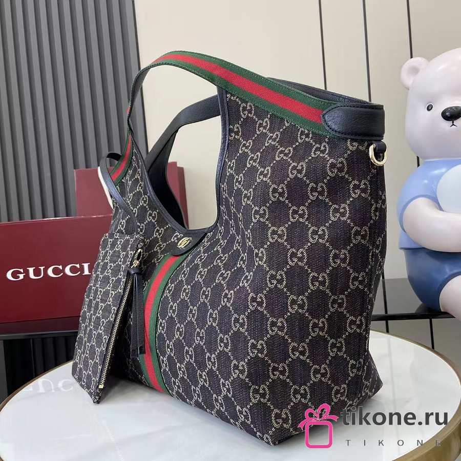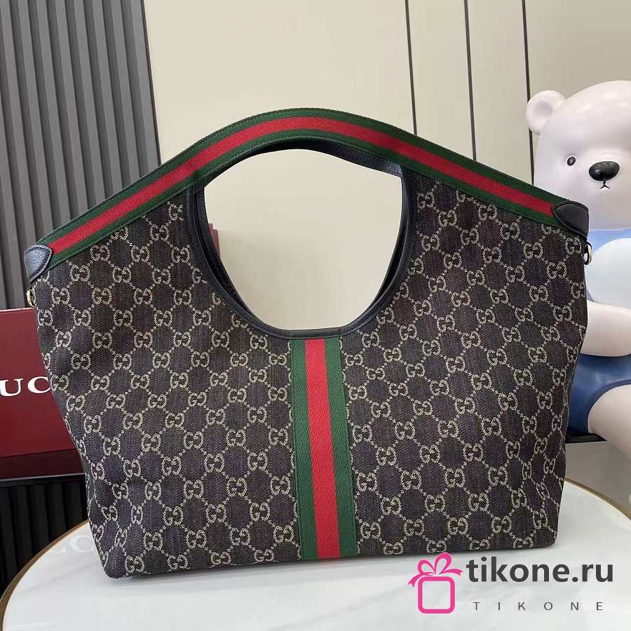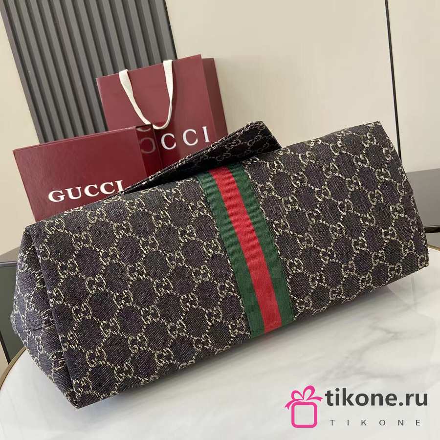 Gucci Giglio Large Tote Bag Black GG Denim - 60×47×16cm