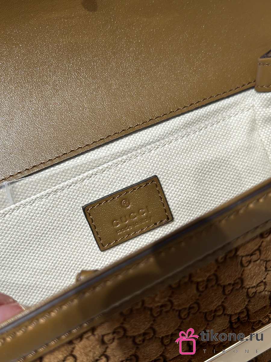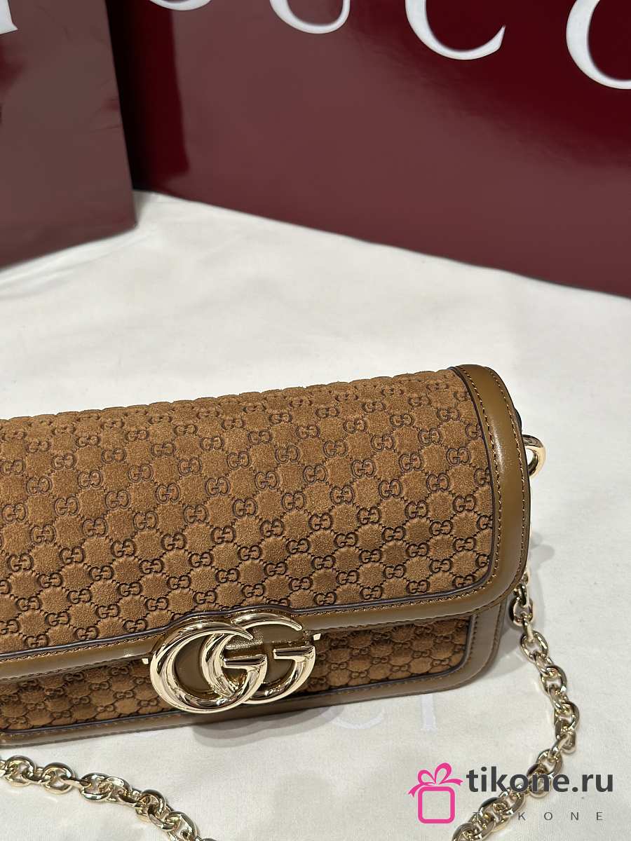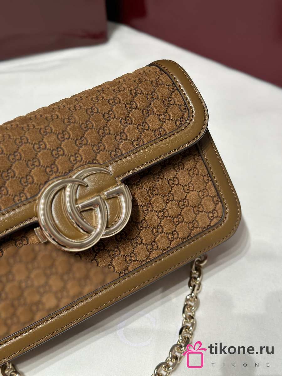 Gucci Go Small Shoulder Bag Brown GG Suede - 21.5x14x9cm