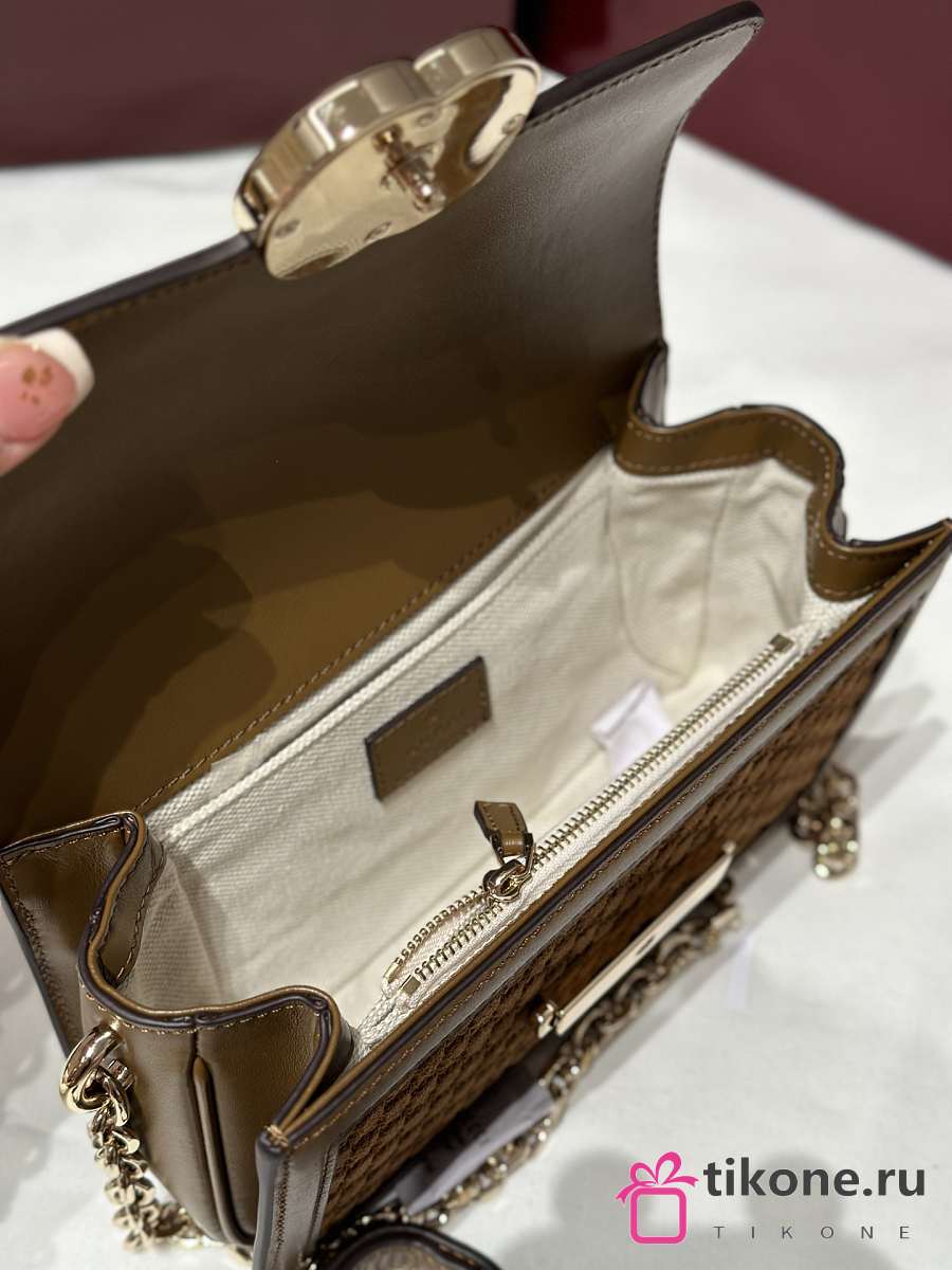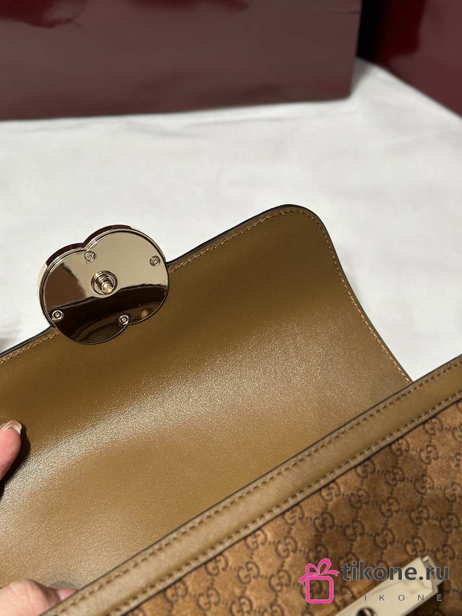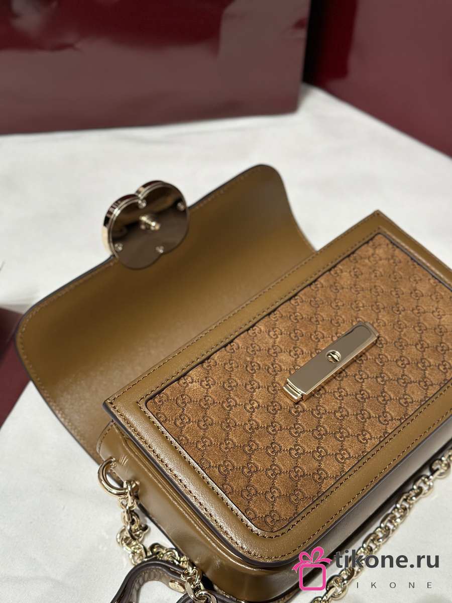Gucci Go Small Shoulder Bag Brown GG Suede - 21.5x14x9cm