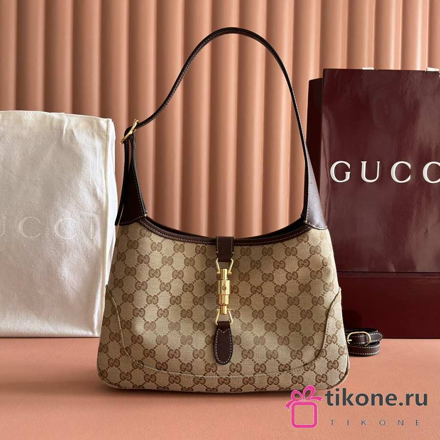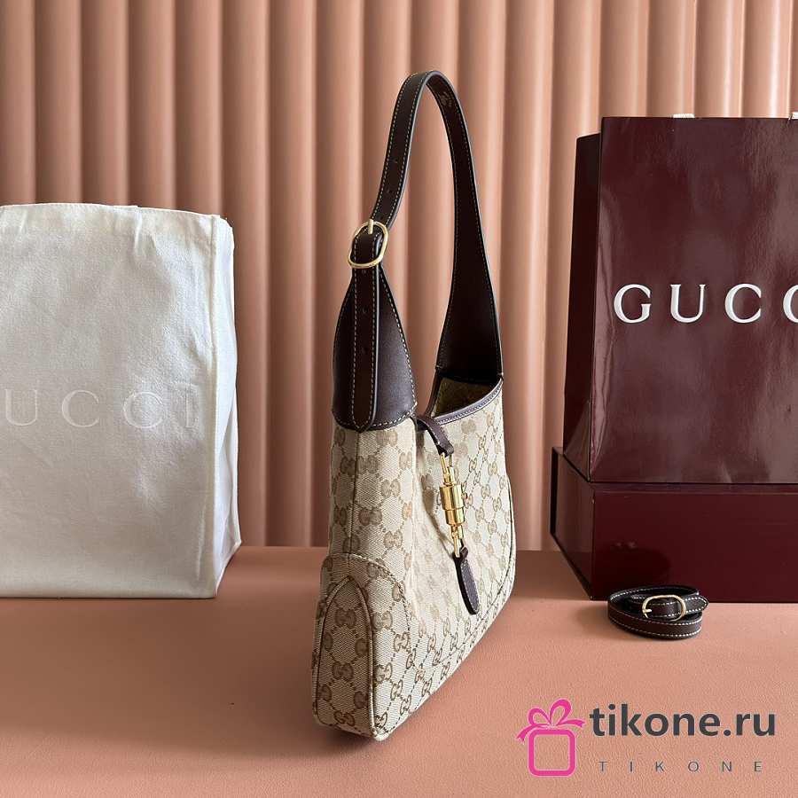 Gucci Jackie 1961 Medium Shoulder Bag Beige and Brown GG Canvas - 31.5x22x4.5cm