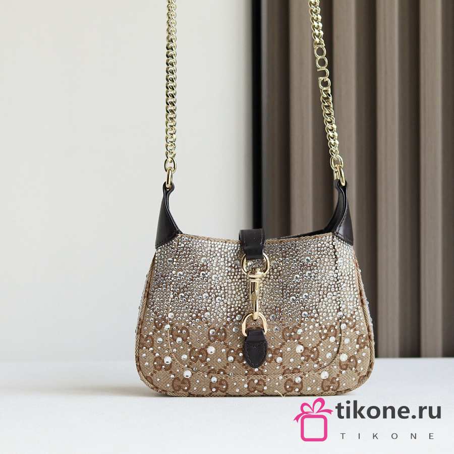 Gucci Jackie 1961 Mini Crystal Bag In Black - 19x13x3cm