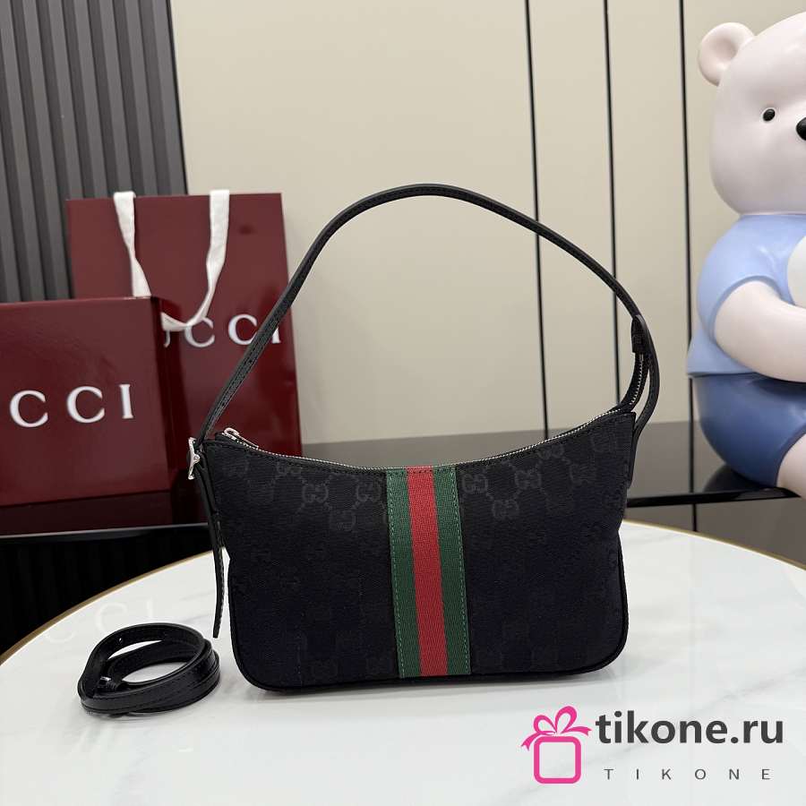 Gucci Lunetta Small Crossbody Bag Black GG Canvas - 22x13x3cm
