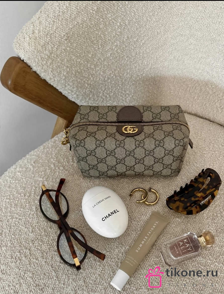 Gucci Ophidia GG Cosmetic Case Beige And Brown GG Canvas - 16x9x9cm