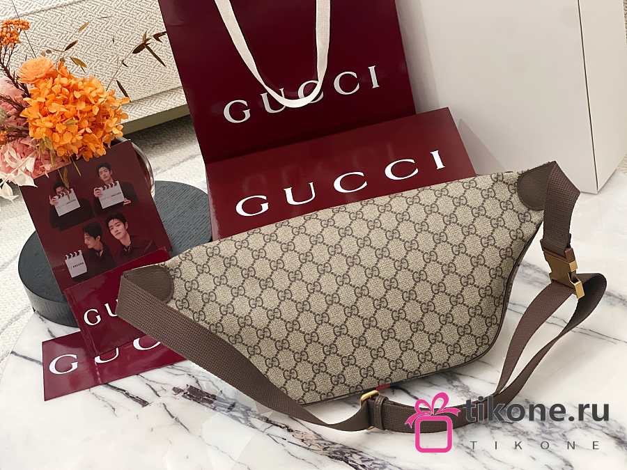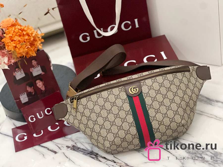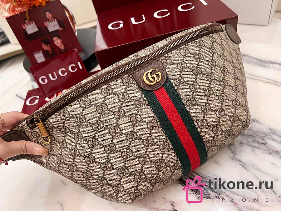 Gucci Ophidia Large Belt Bag In Beige And Dark Brown Fabric - 46x18x5cm