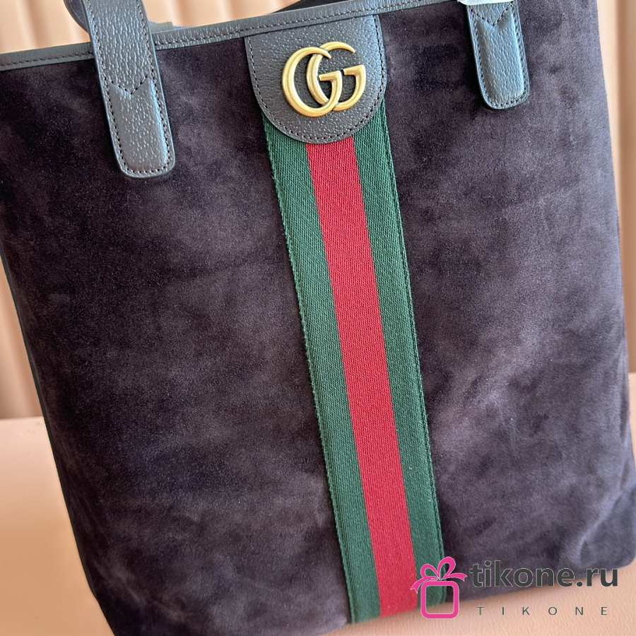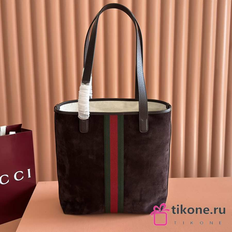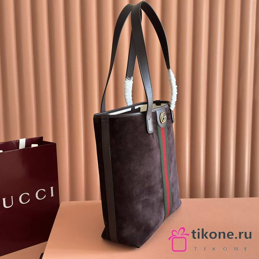 Gucci Ophidia Medium Tote Bag In Dark Brown Suede - 36x30x12.5cm