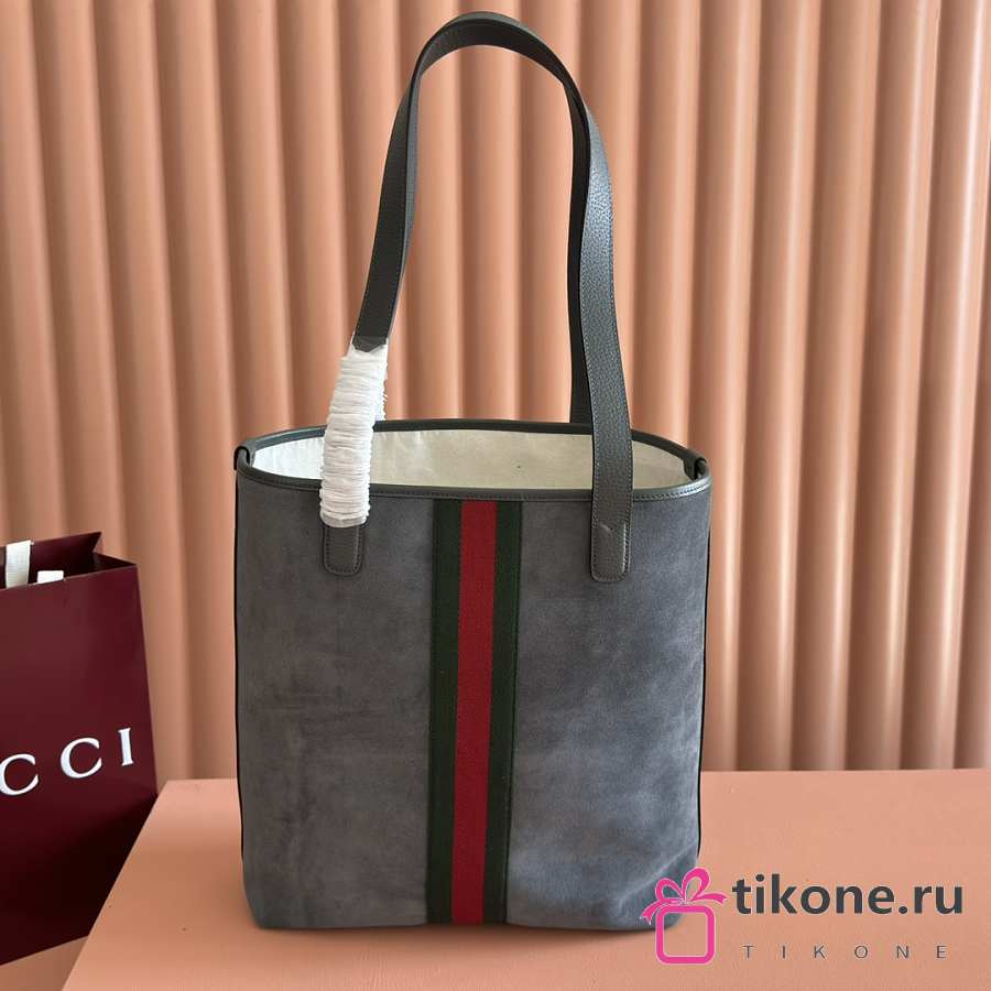 Gucci Ophidia Medium Tote Bag In Gray Suede - 36x30x12.5cm