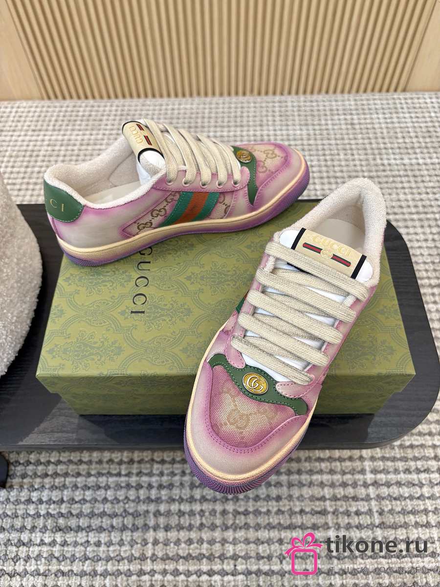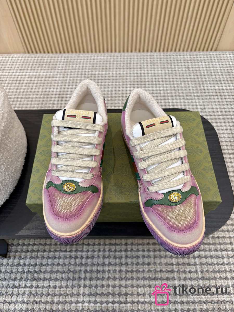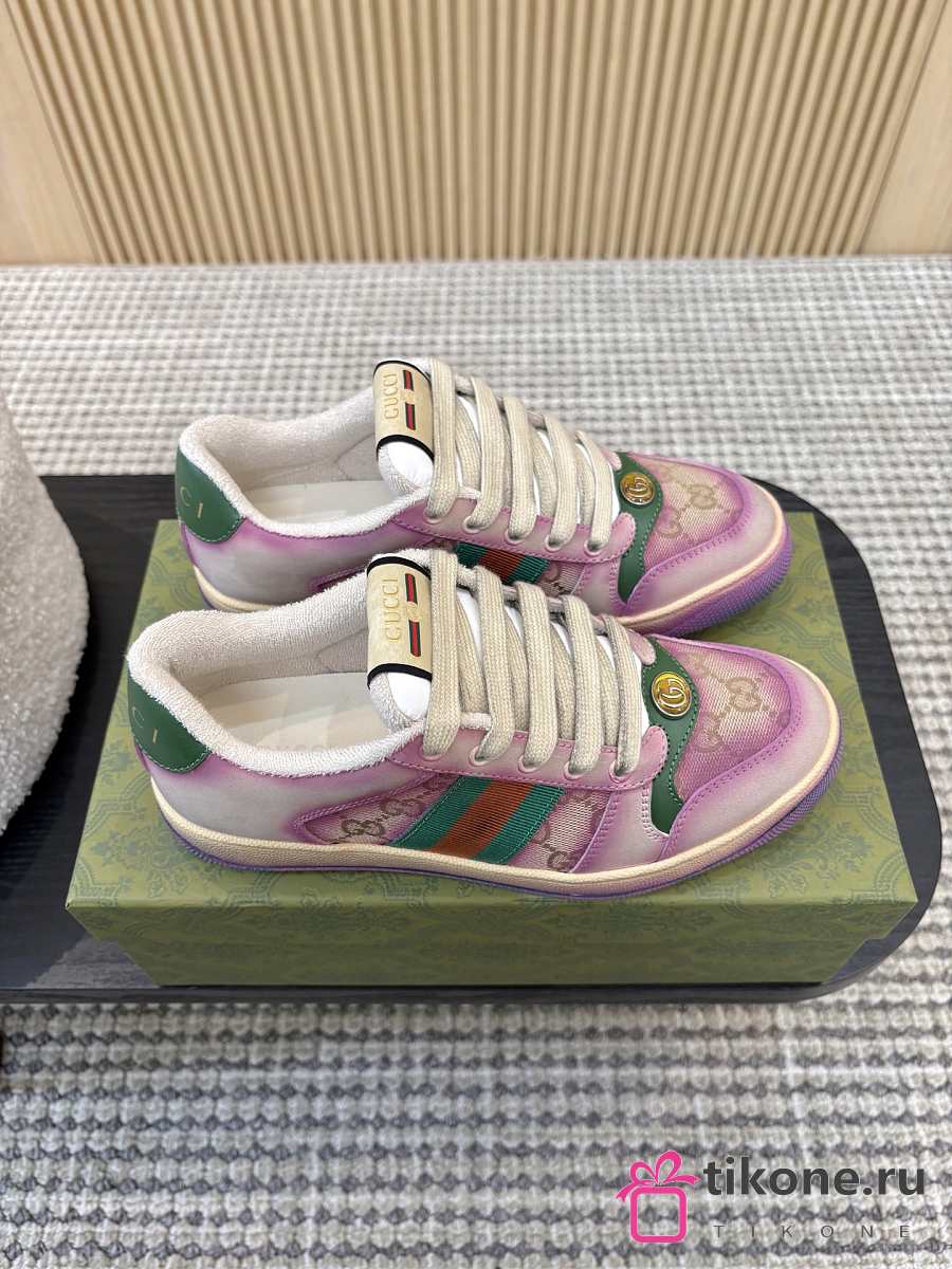 Gucci Women's Serigraphy Screener Trainer Purple Leather Beige And Dark Brown GG Canvas