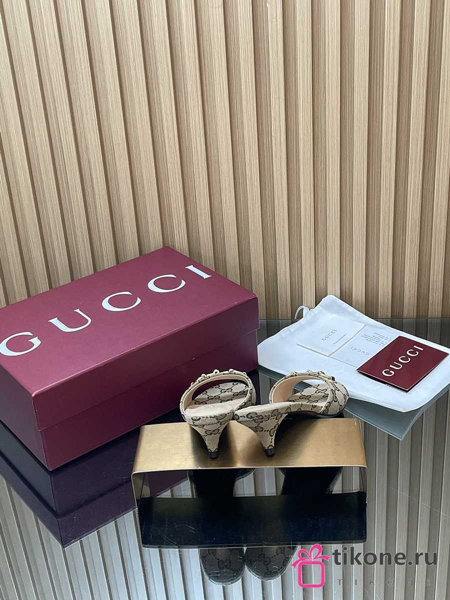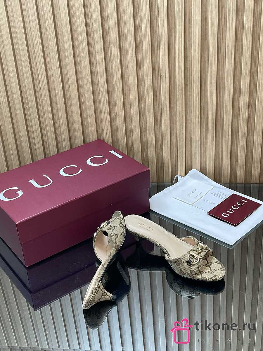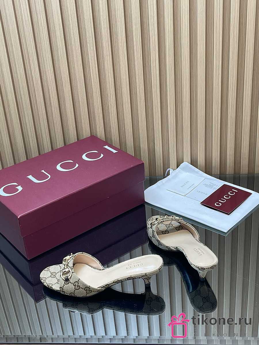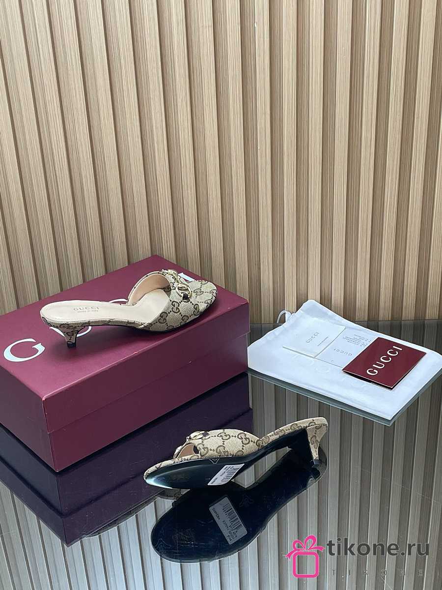 Gucci Women's Slide Sandal With Horsebit Beige And Dark Brown GG Canvas 4.5cm