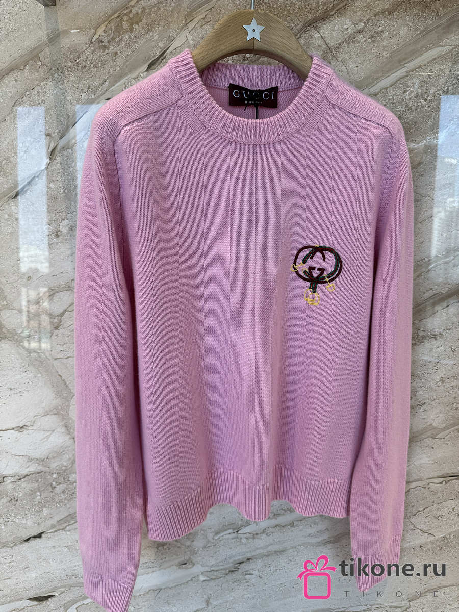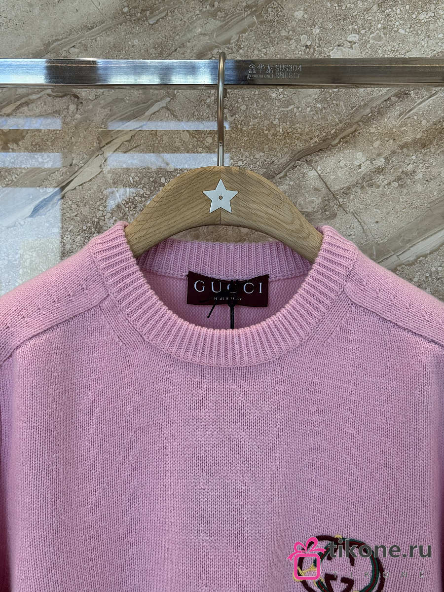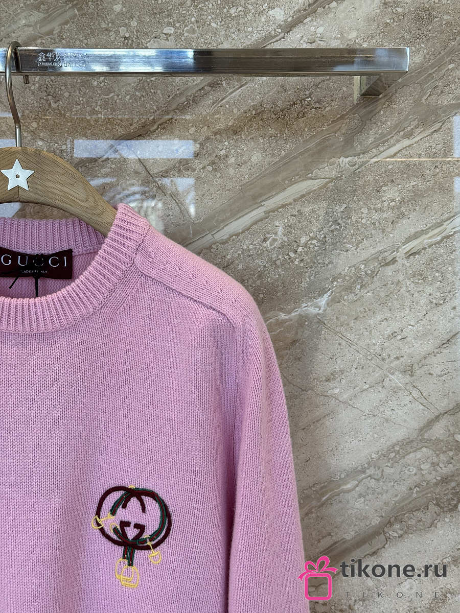 Gucci Wool Cashmere Sweatshirt With Embroidery In Pink