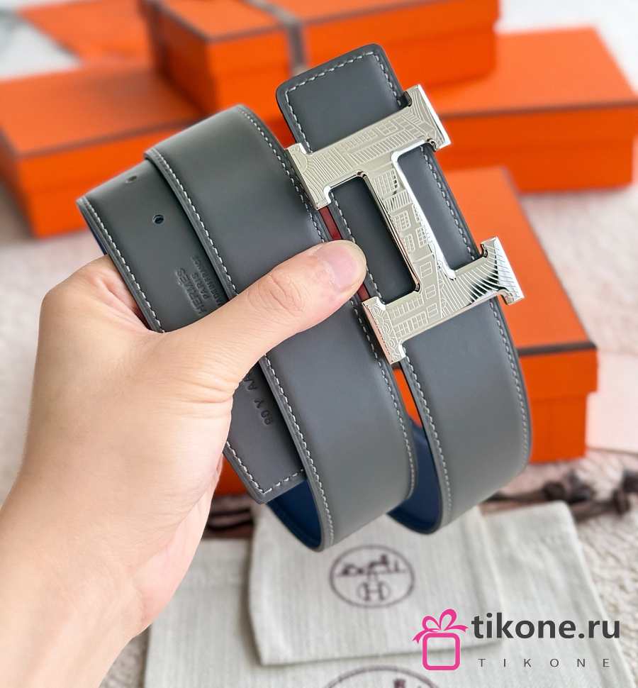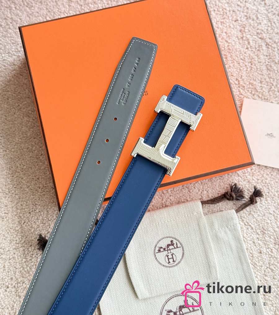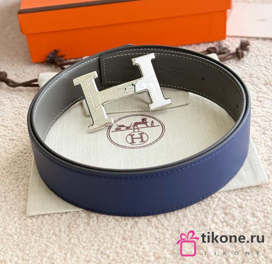 Hermes 5382 Faubourg Belt Buckle & Reversible Leather Strap 32mm Swift Blue/Gray Silver