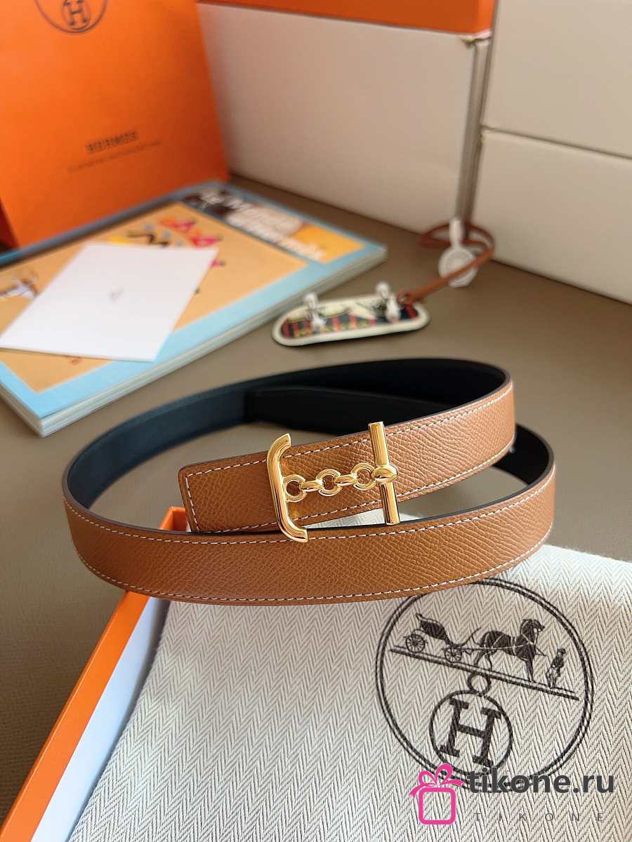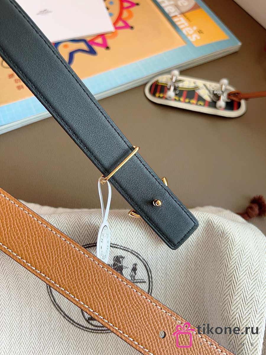 Hermes Ancre Marin Belt Buckle & Reversible Leather Strap 24mm Swift Epsom Black/Brown Gold