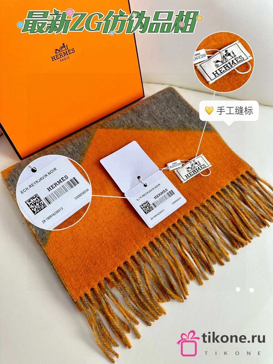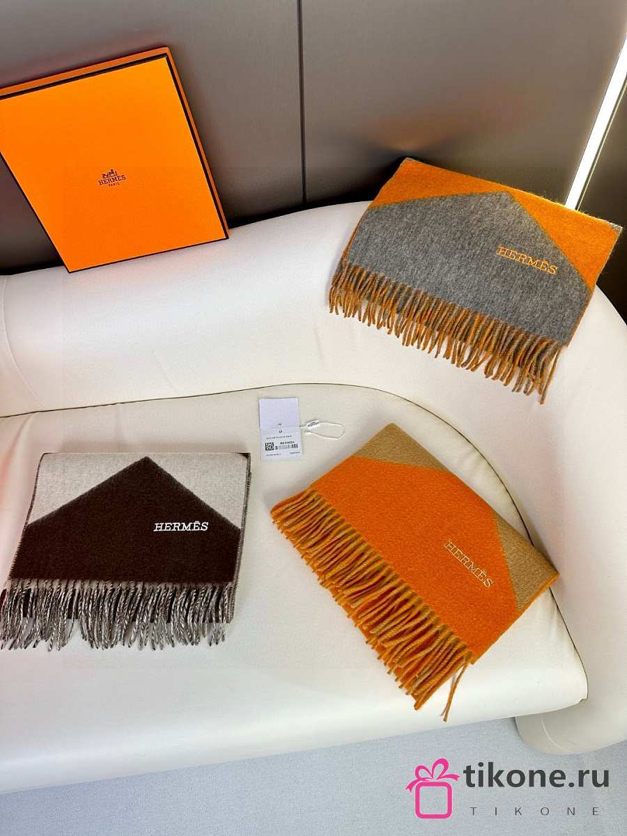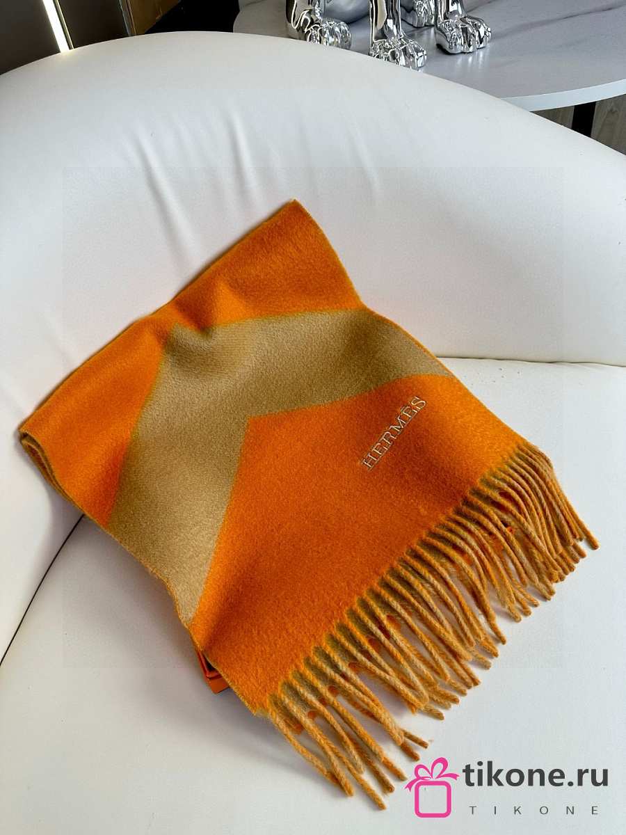 Hermes Chevron Scarf Cashmere Casaque Diamant Orange and Tan 30x150 cm