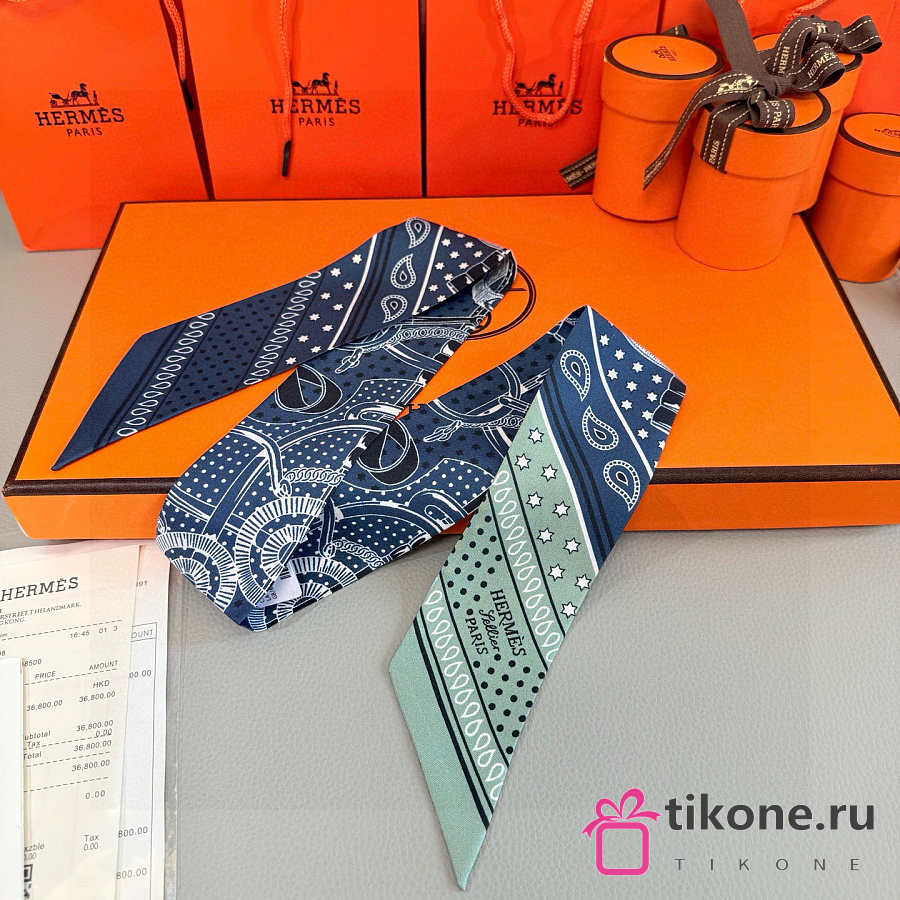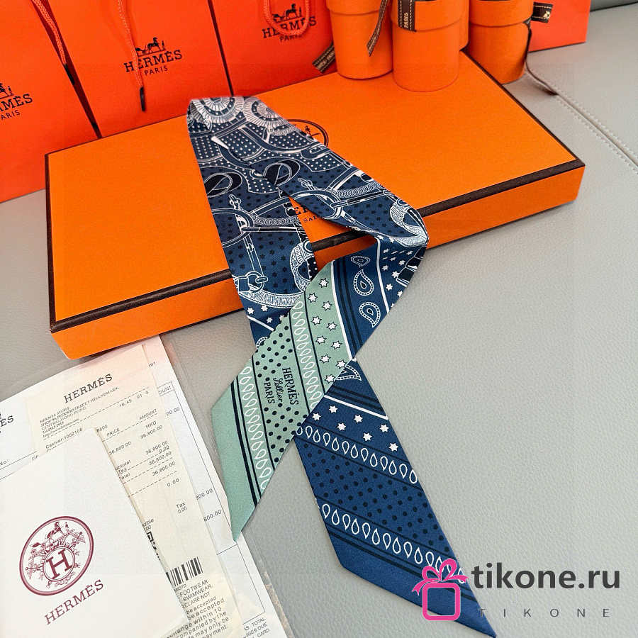 Hermes Eperon d'Or Bandana Twilly Blue - 5x86cm