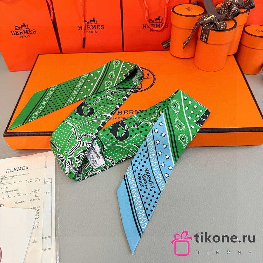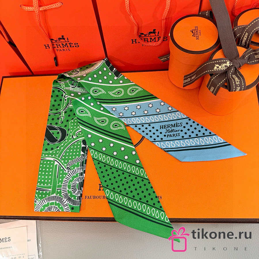 Hermes Eperon d'Or Bandana Twilly Green - 5x86cm