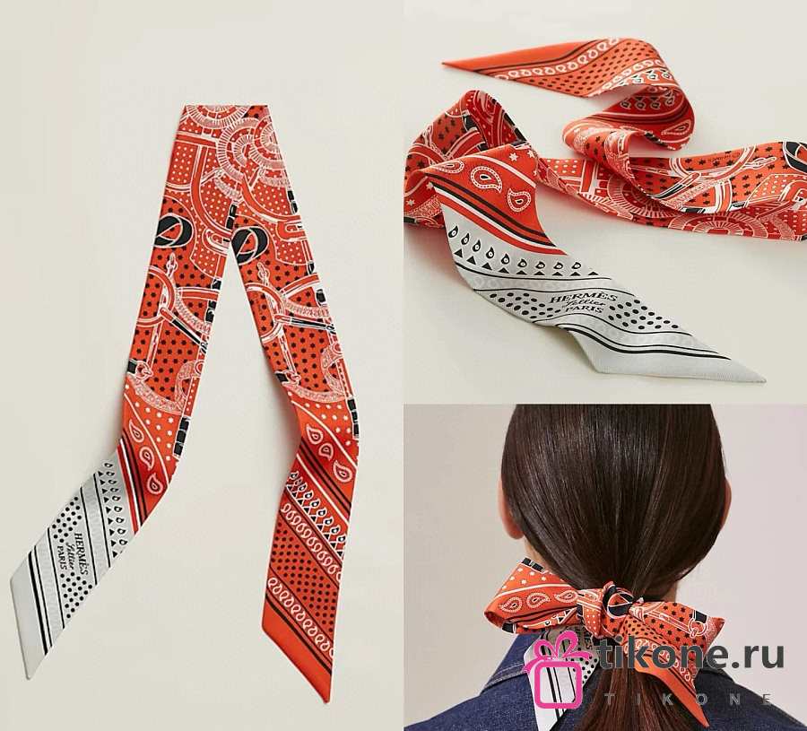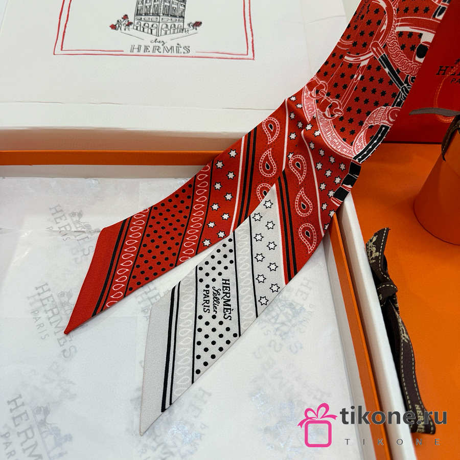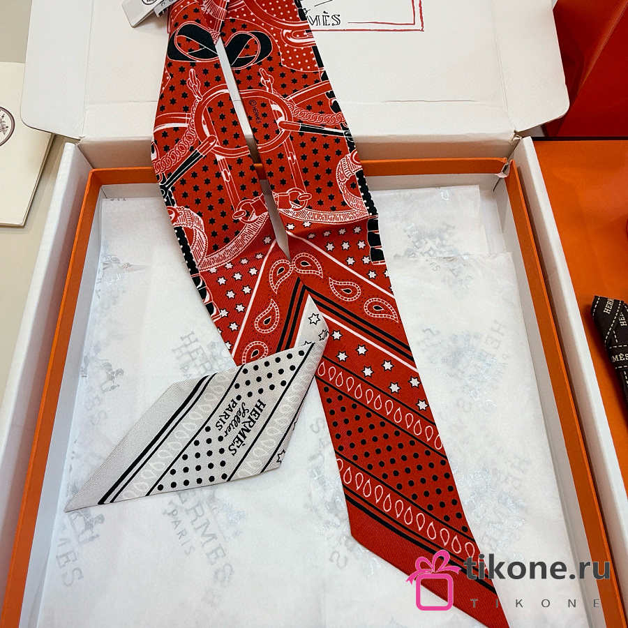 Hermes Eperon d'Or Bandana Twilly Orange - 5x86cm