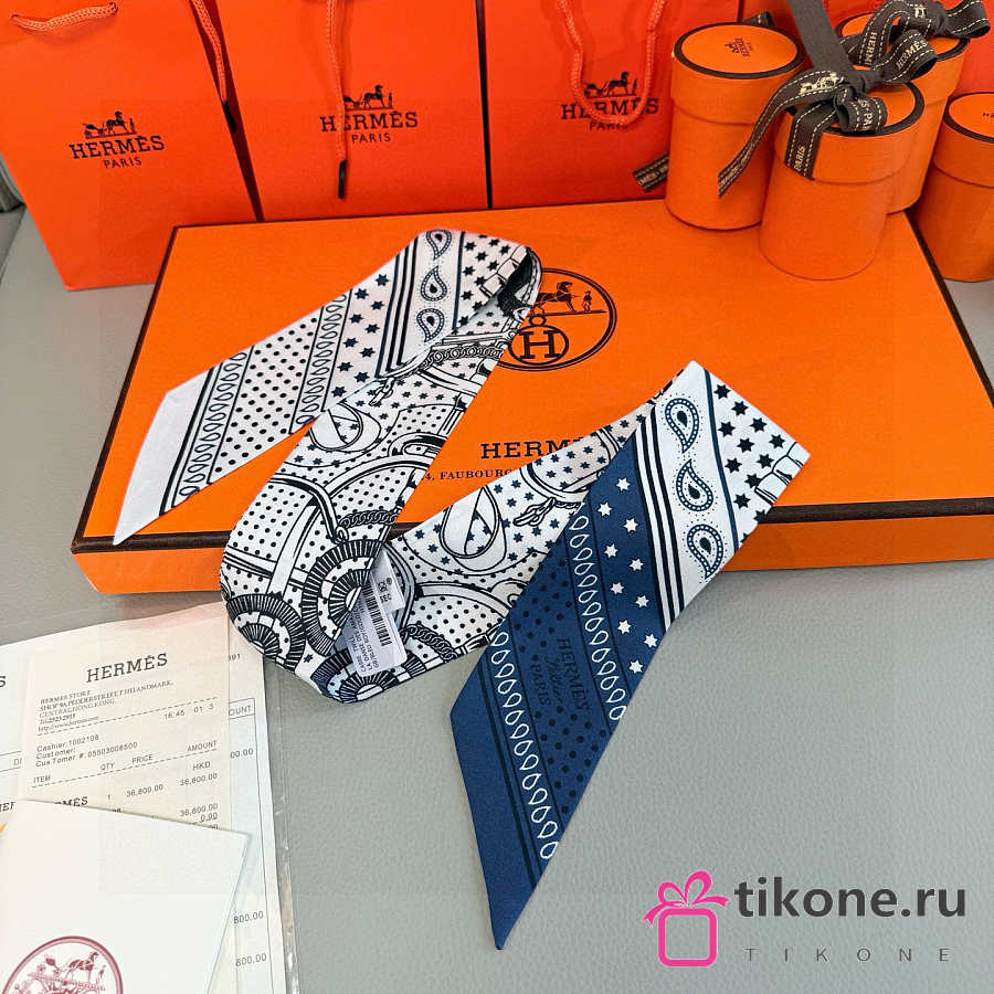 Hermes Eperon d'Or Bandana Twilly White - 5x86cm