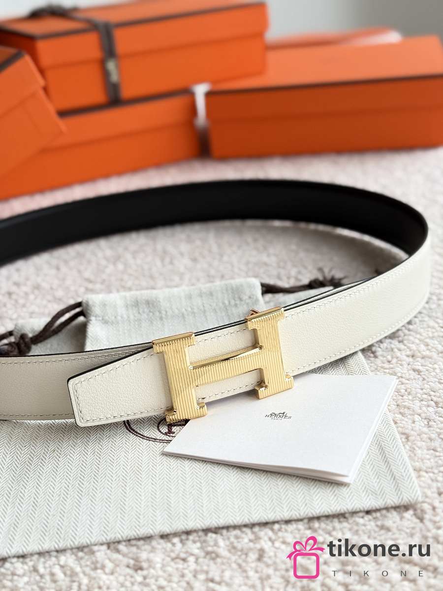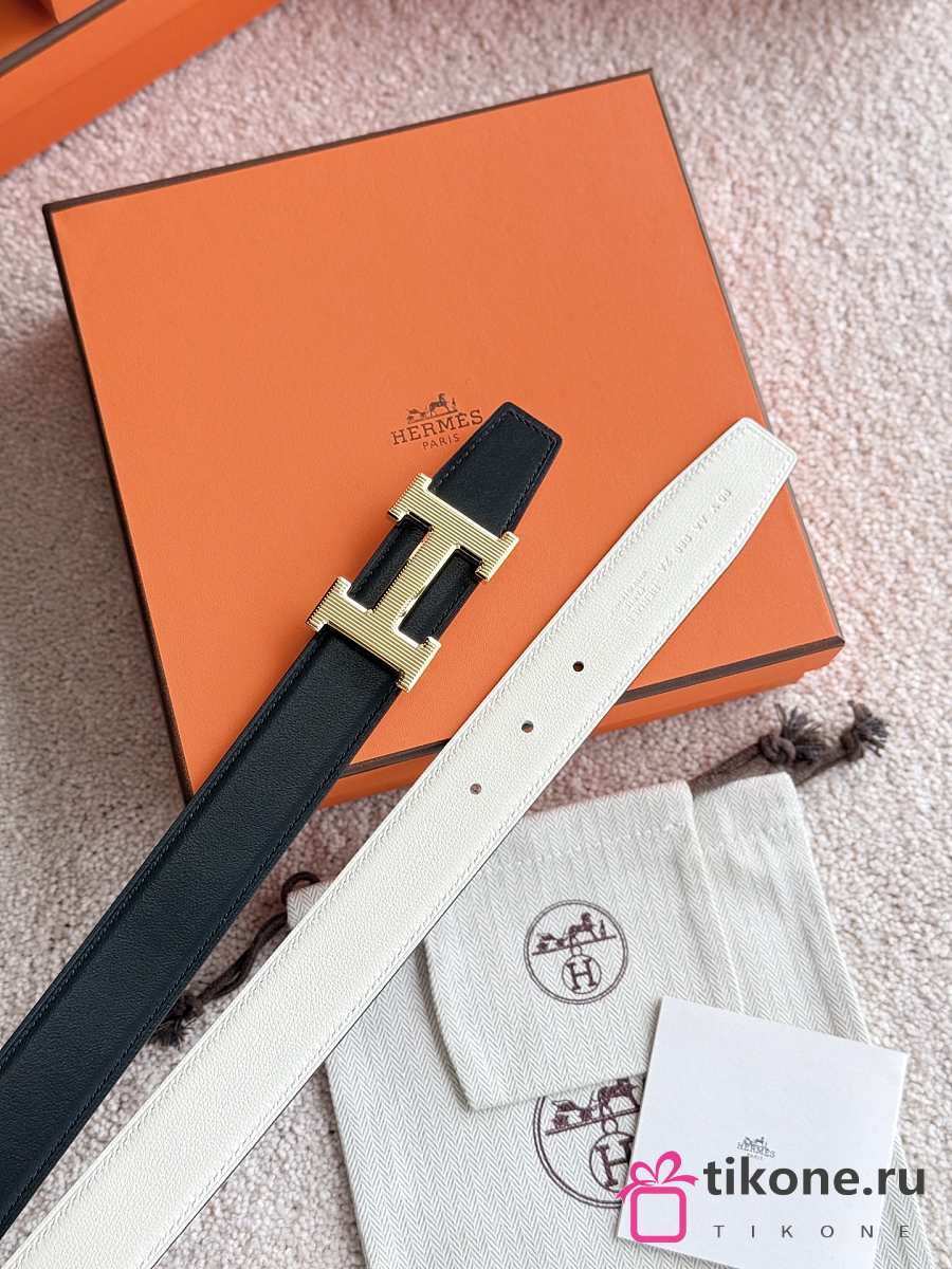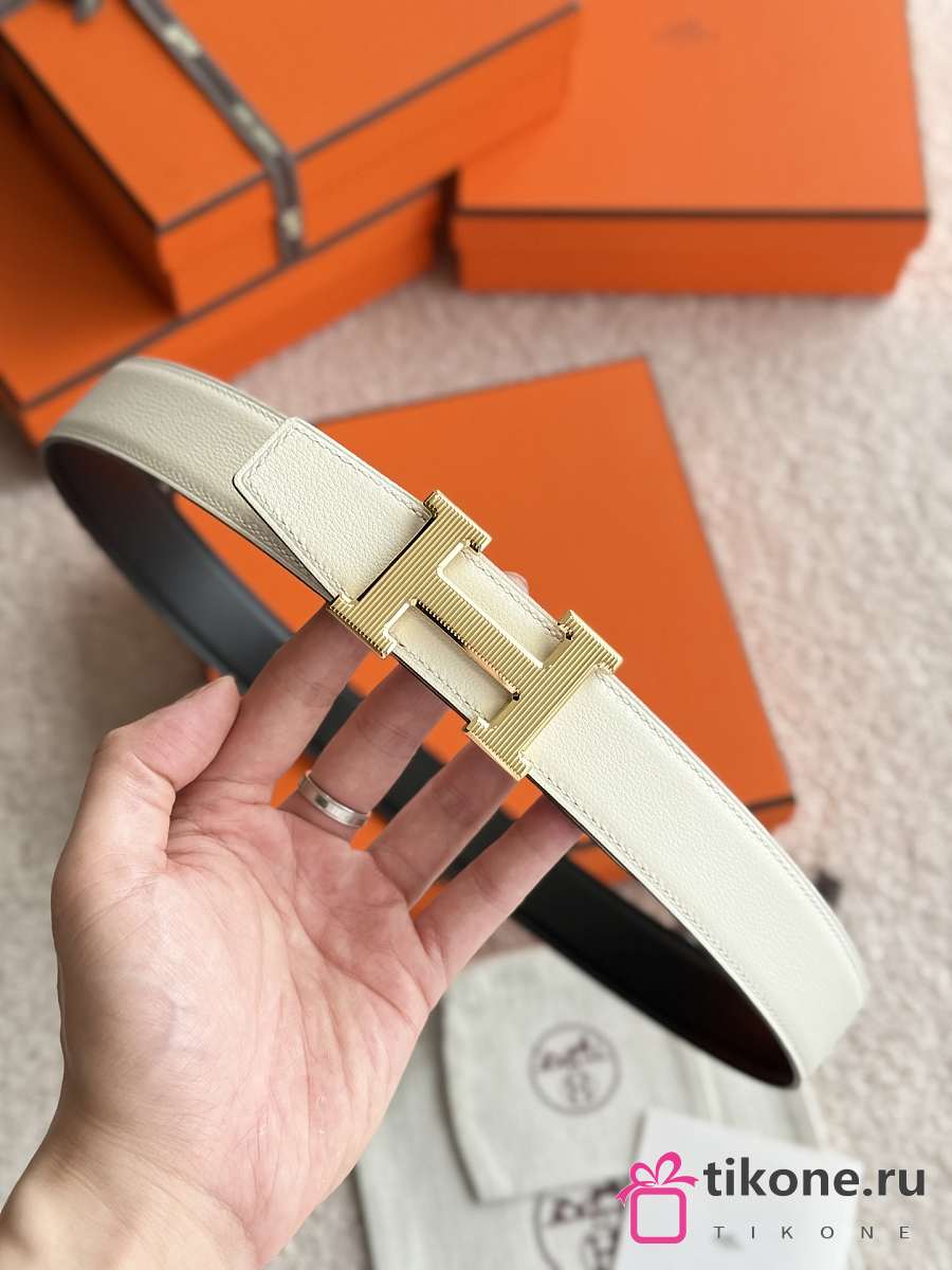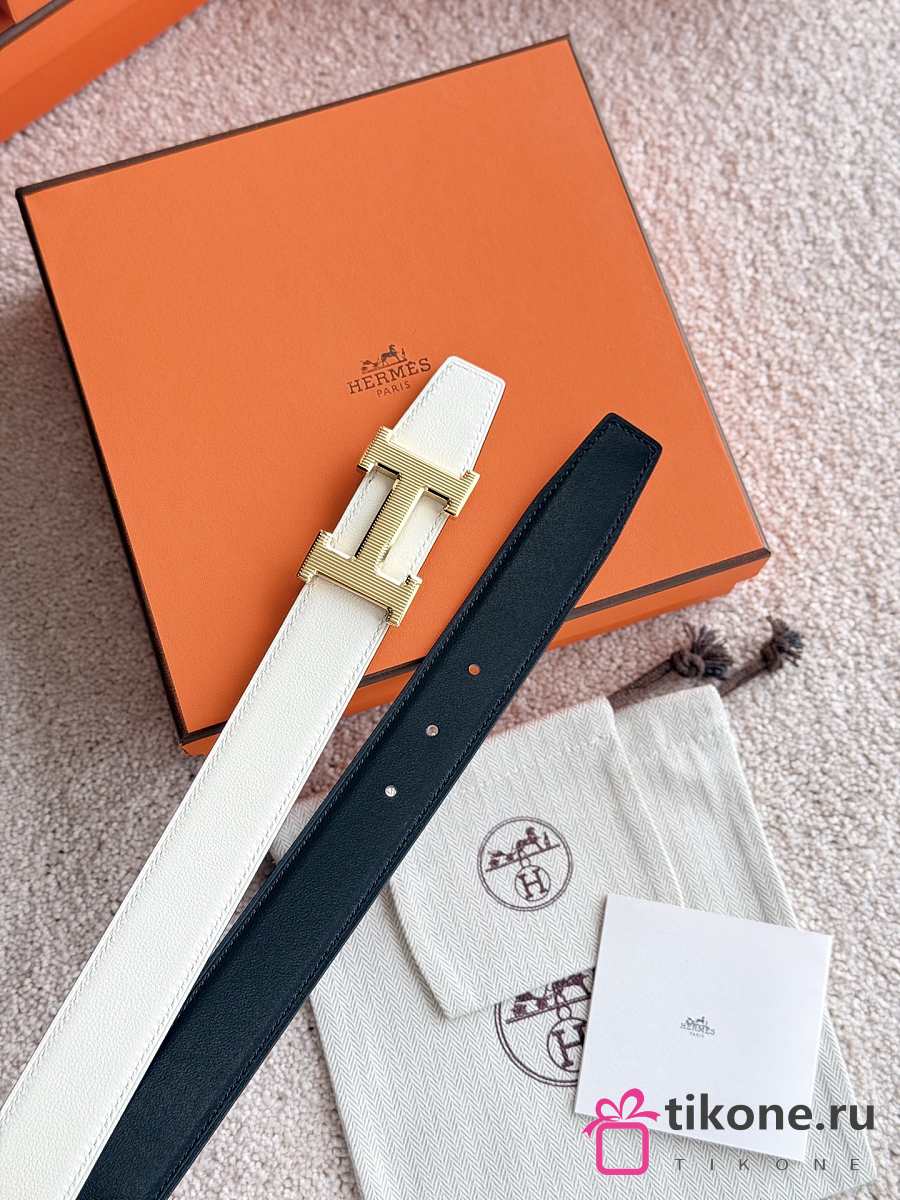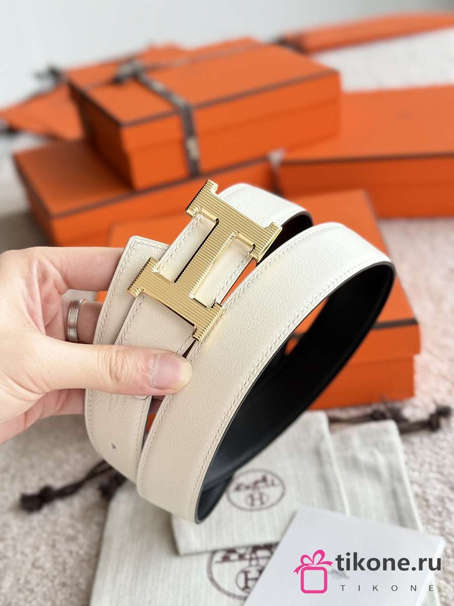 Hermes H Striee Belt Buckle & Reversible Leather Strap 32mm Box Togo Black/White Gold