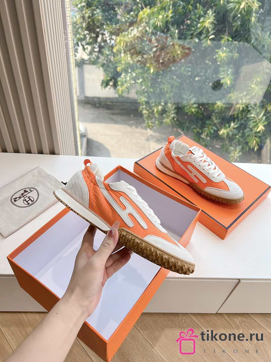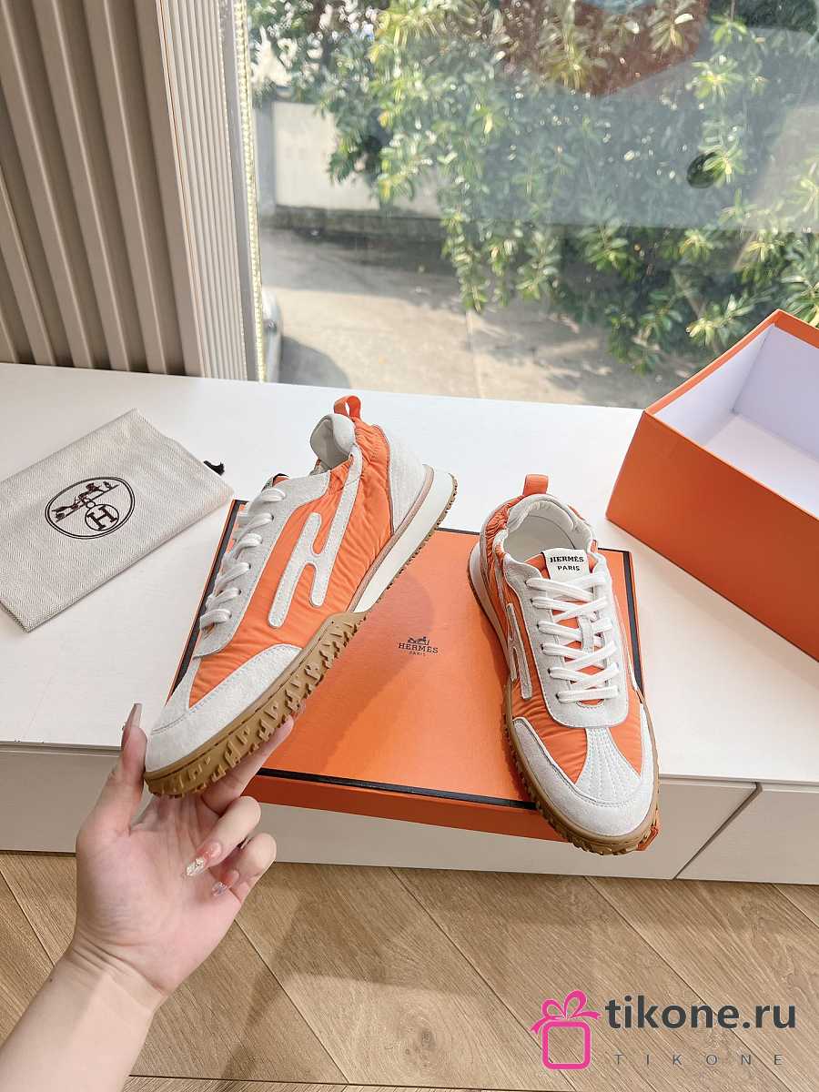 Hermes Jet Sneaker Canvas and Suede Orange/White H242923