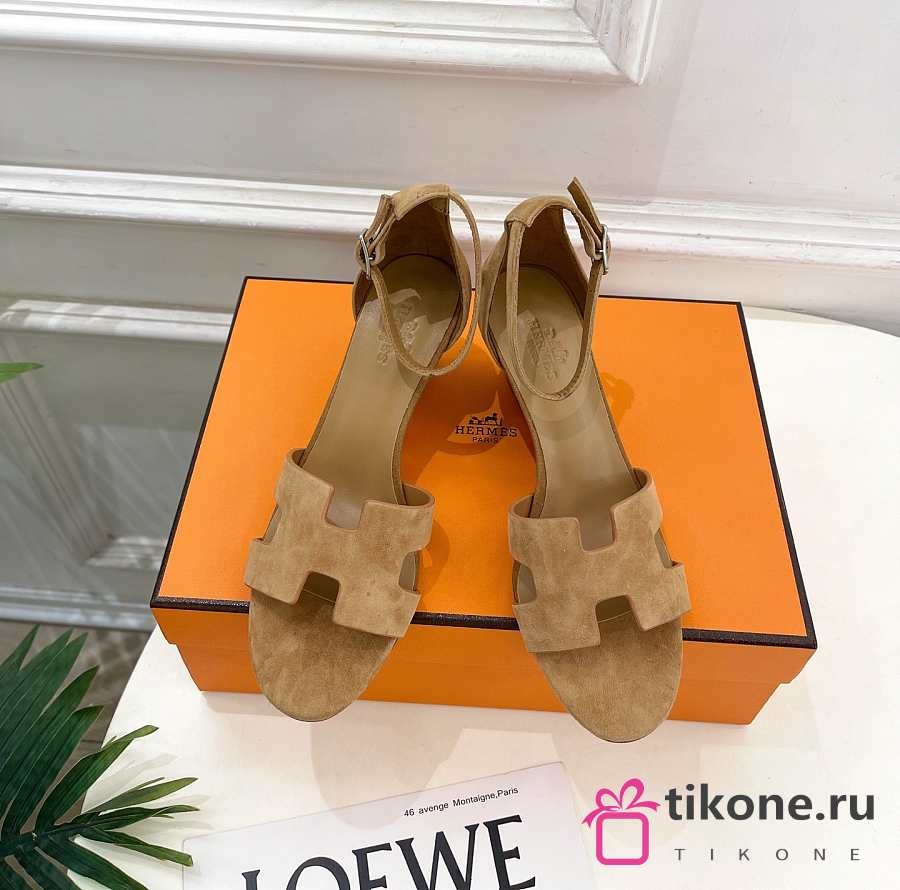 Hermes Legend Sandal Suede in Light Gold 7cm