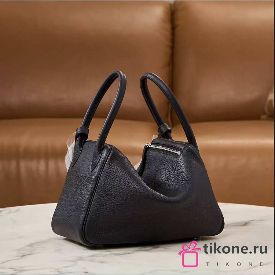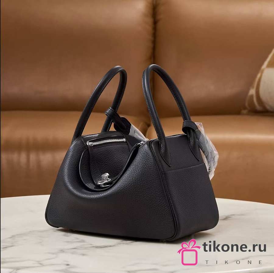 Hermes Lindy Handmade Clemence Leather Black Silver - 26cm