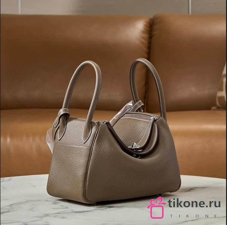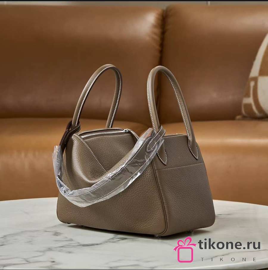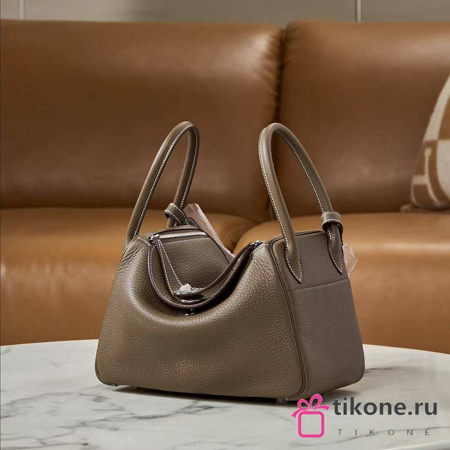Hermes Lindy Handmade Clemence Leather Elephent Gray Silver - 26cm