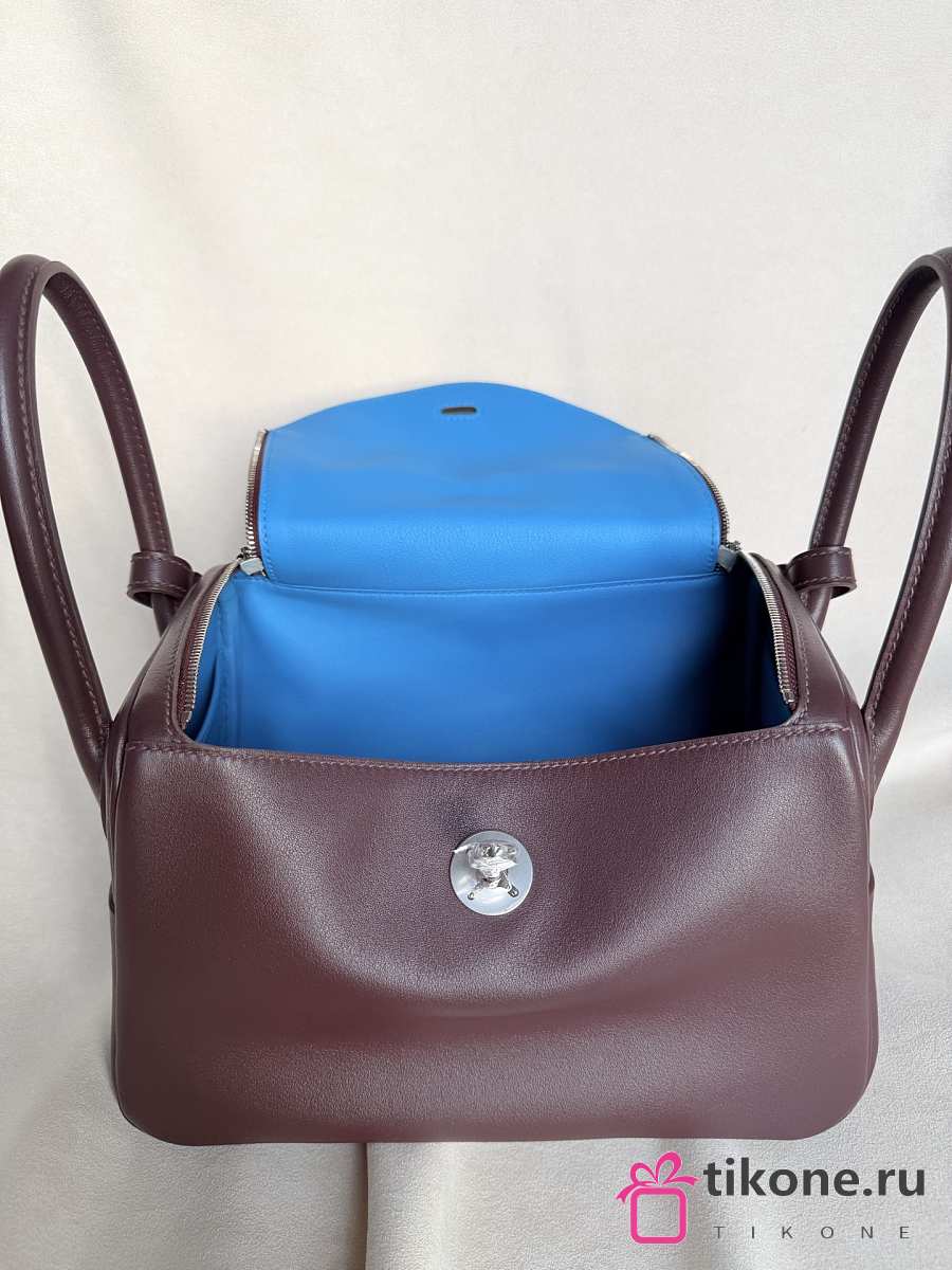 Hermes Lindy Handmade Swift Leather Mocha Florida Blue Silver - 26cm
