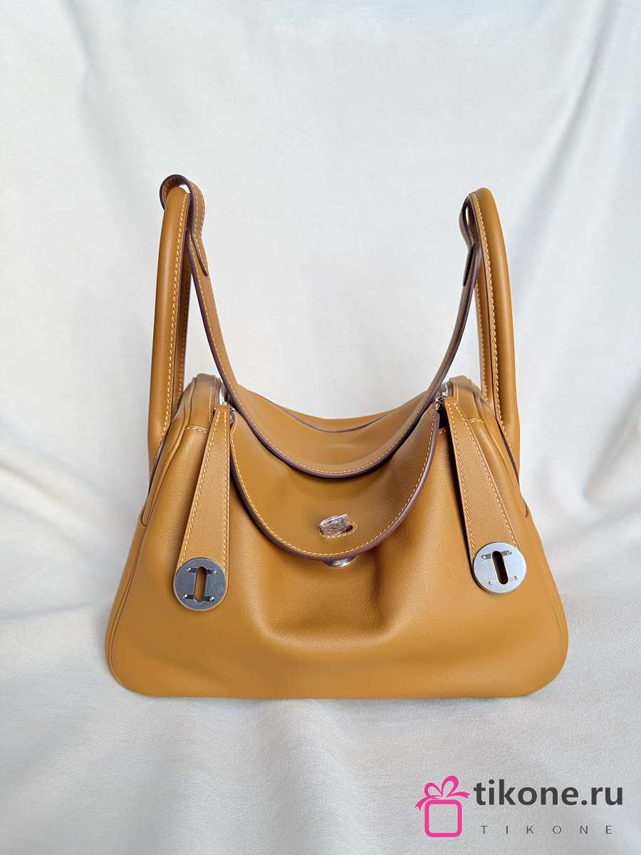 Hermes Lindy Handmade Swift Leather Sesame Mallow Purple Silver - 26cm
