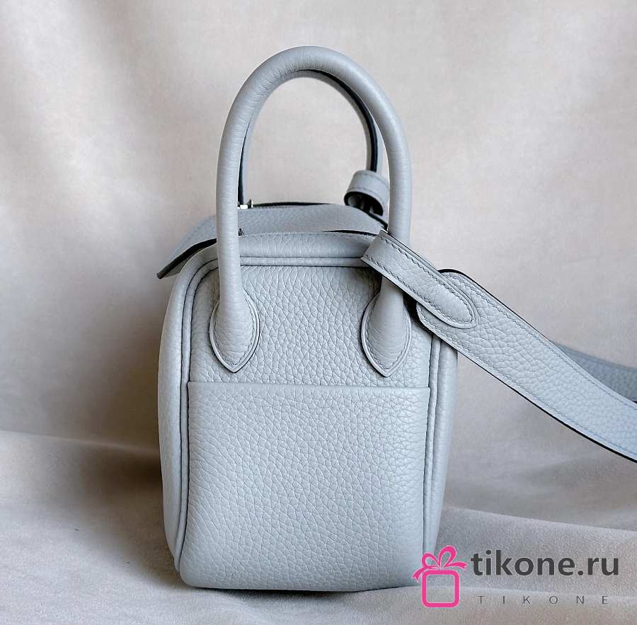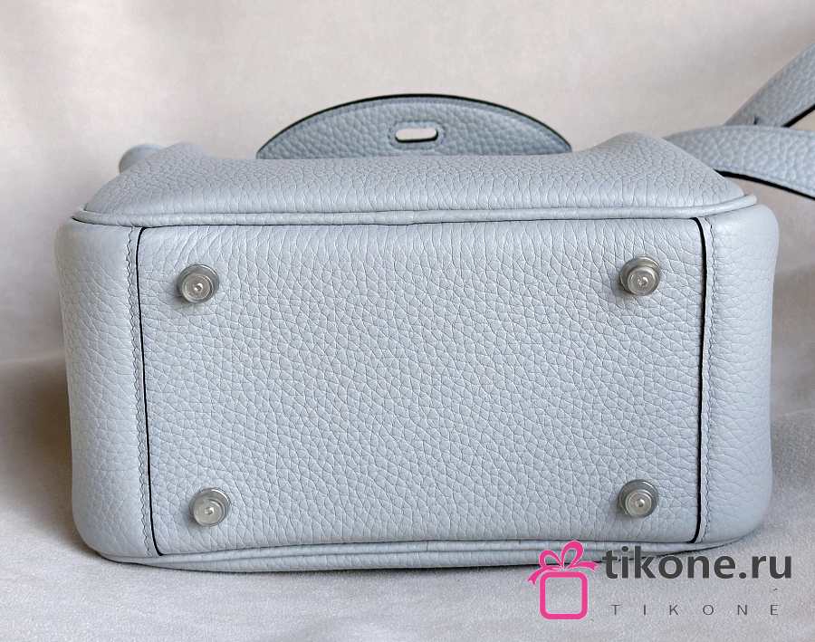 Hermes Lindy Mini Handmade Togo Leather Light Blue Silver - 19cm