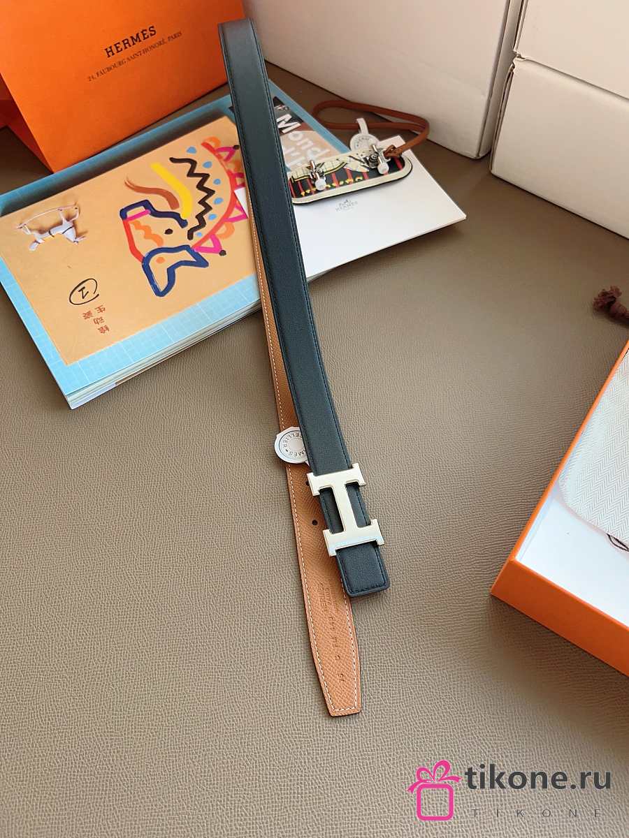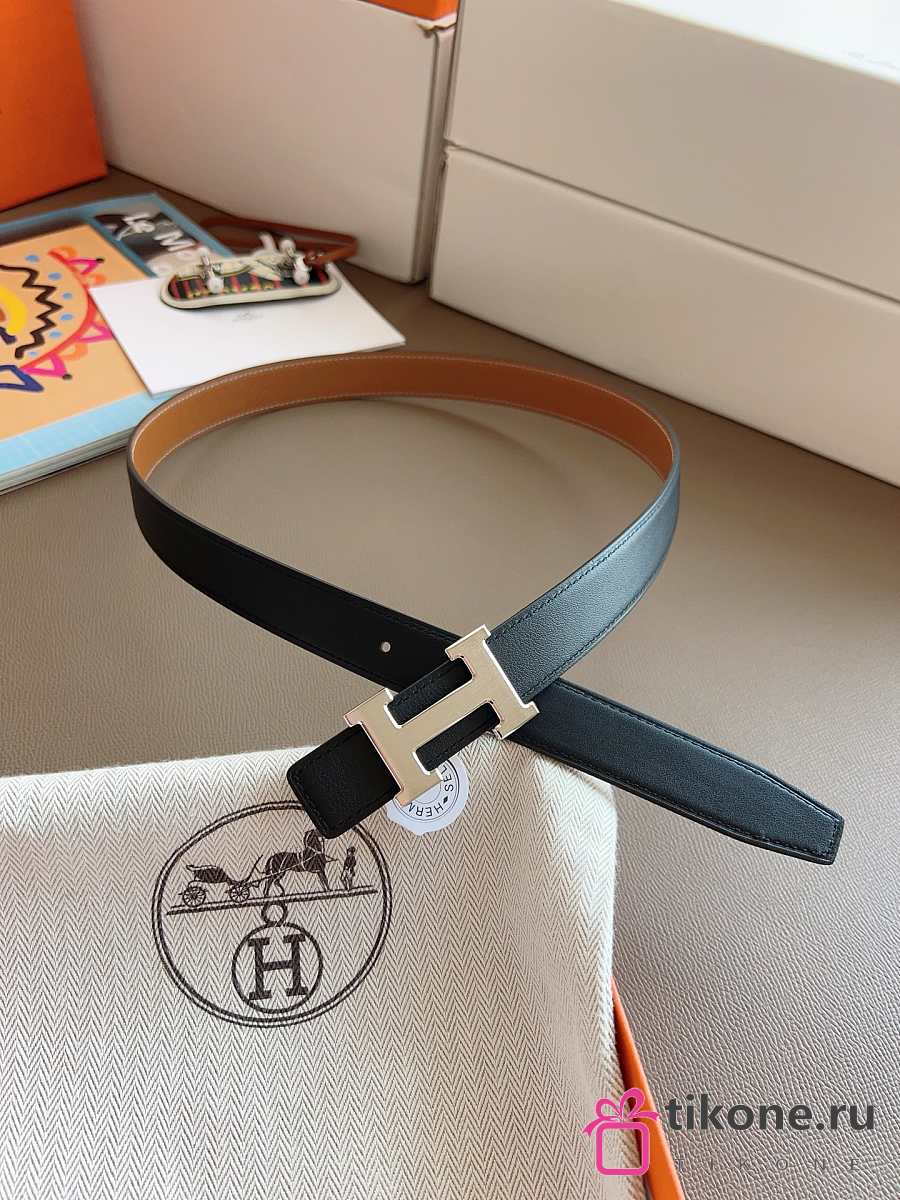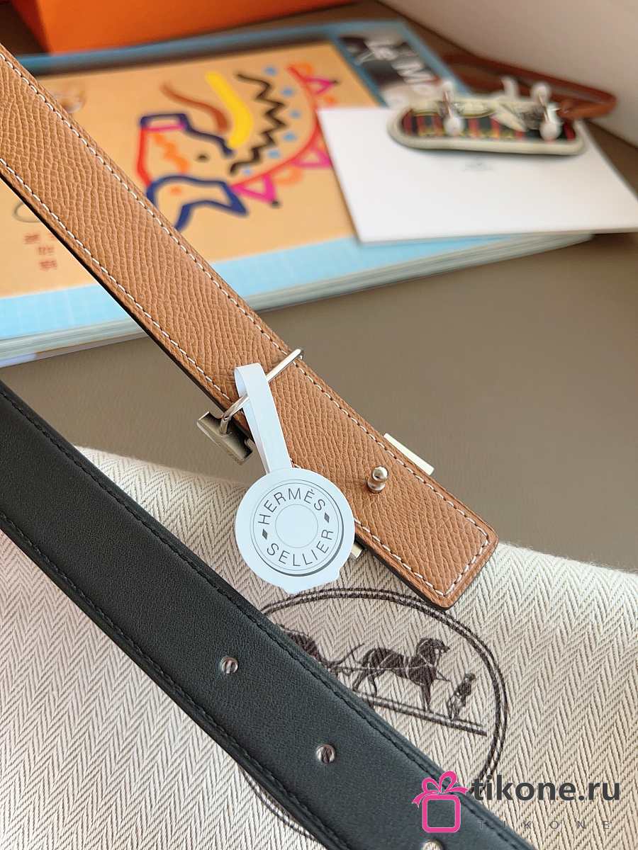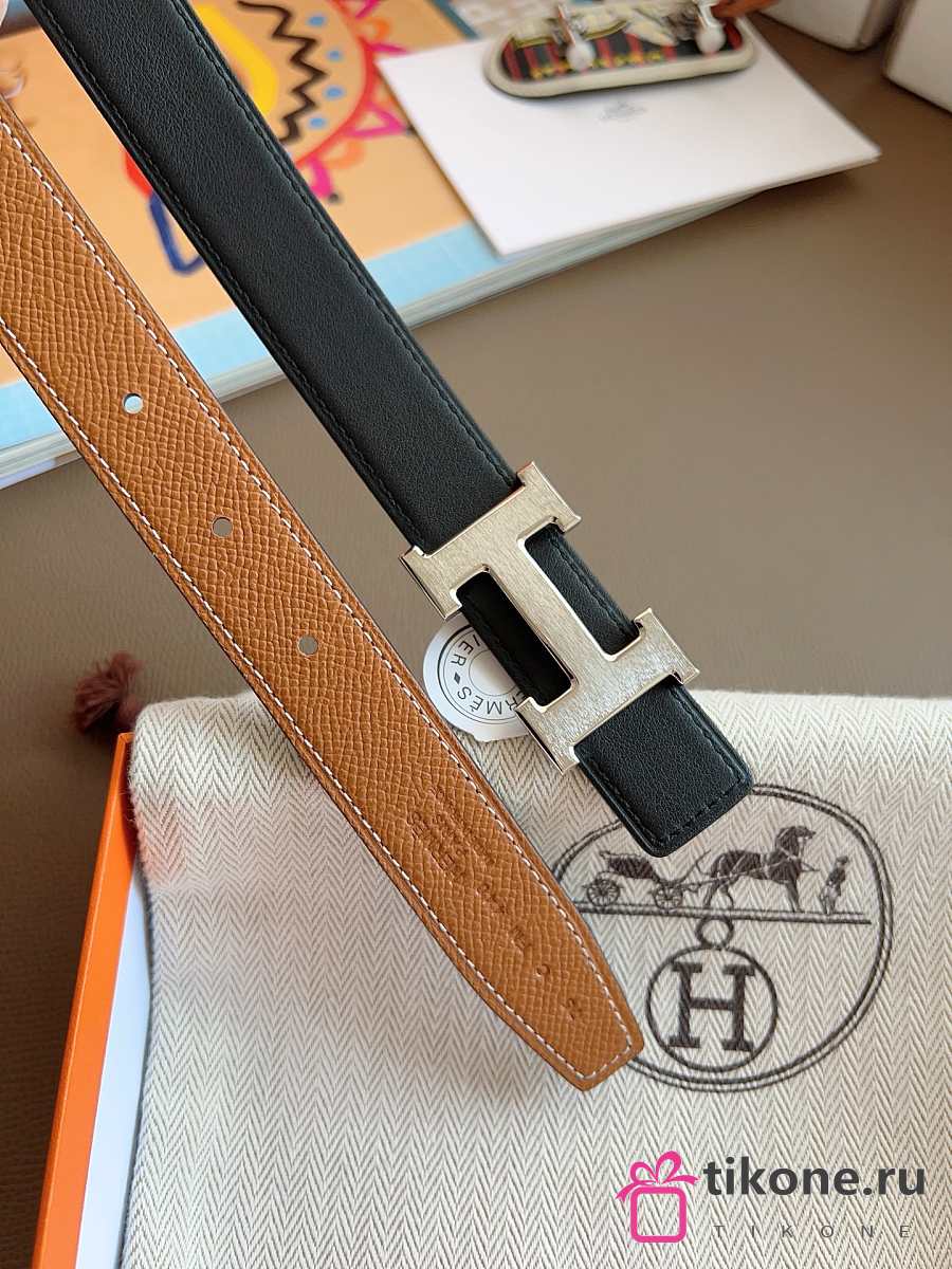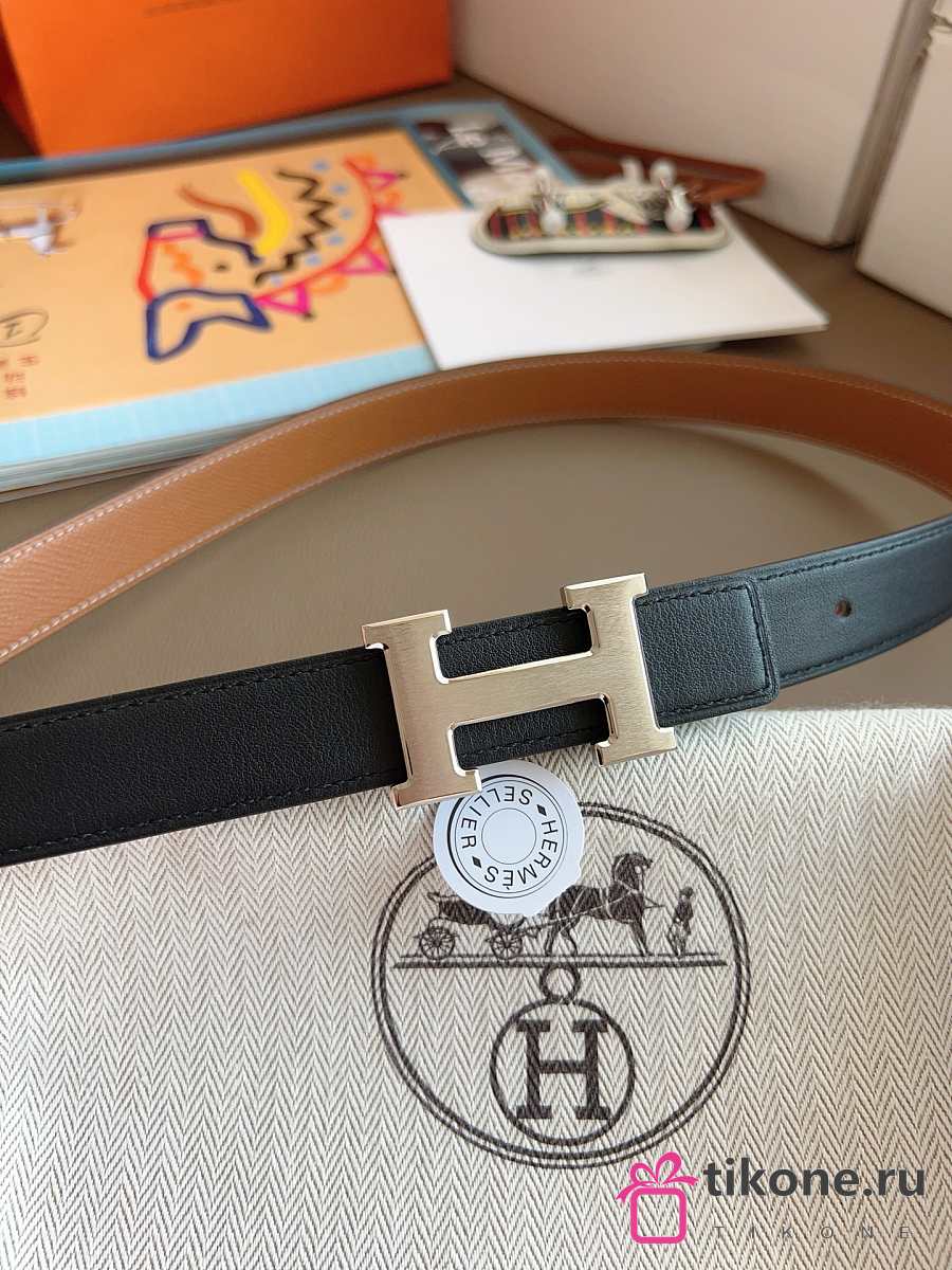 Hermes Fibbia Da Cintura HDN & Pelle Reversibile Per Cintura 24mm Gray/ White Gold