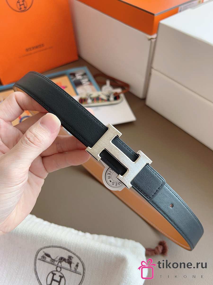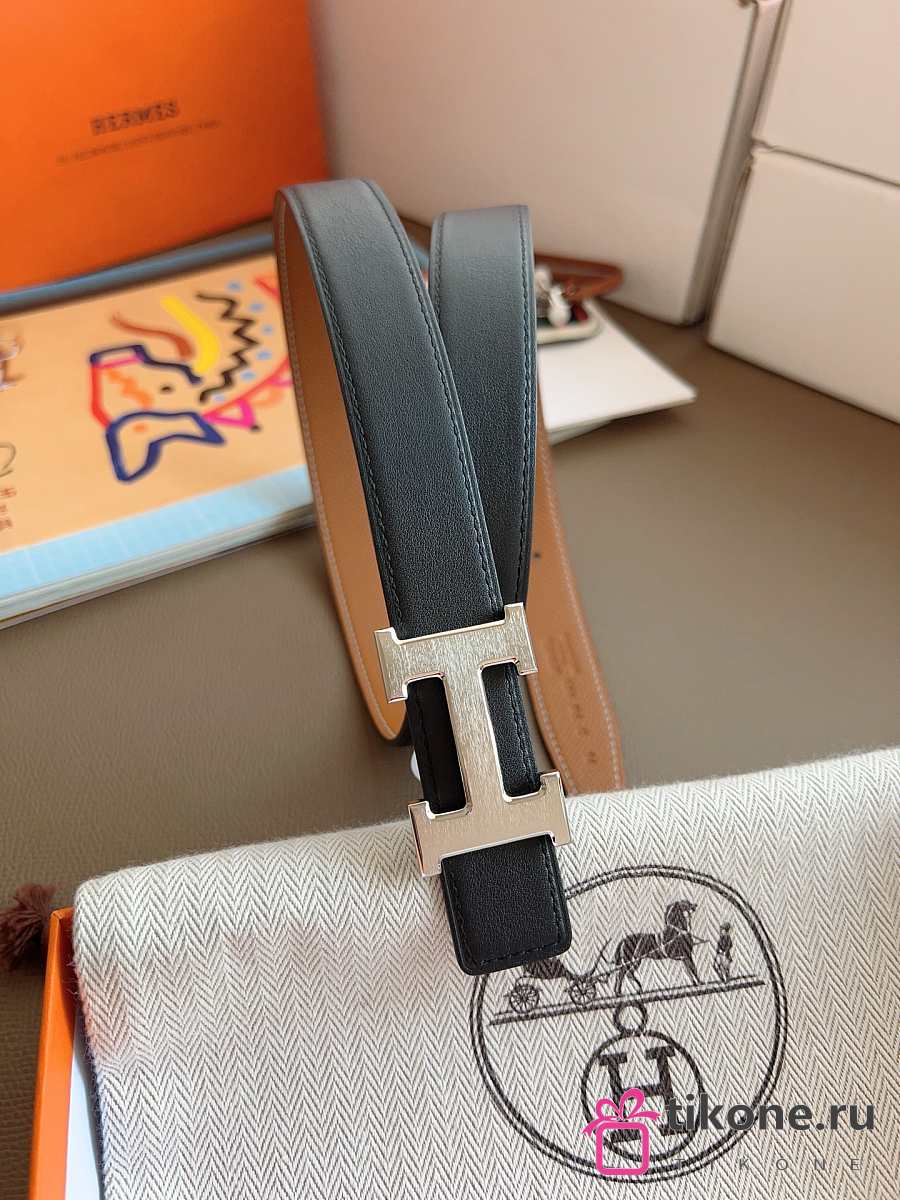 Hermes Mini Constance Martelee Belt Buckle & Reversible Leather Strap 24mm Swift Epsom Black/Brown Silver