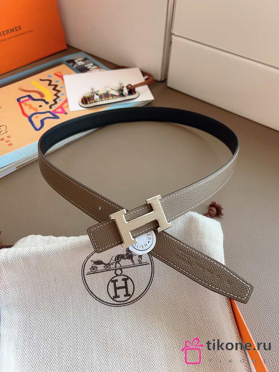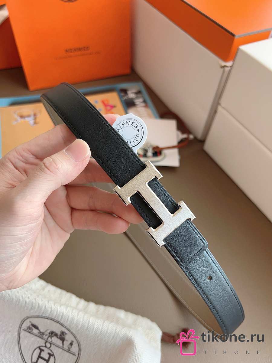 Hermes Mini Constance Martelee Belt Buckle & Reversible Leather Strap 24mm Swift Epsom Black/Gray Silver