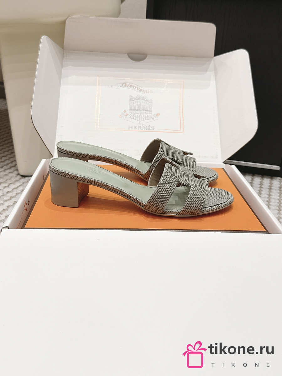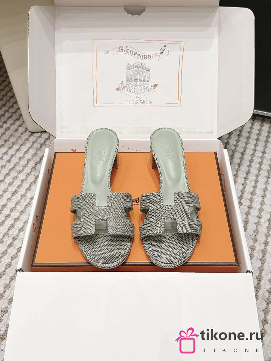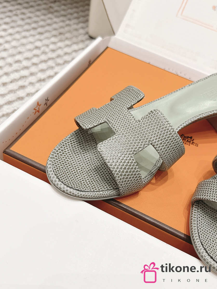 Hermes Oasis Sandal Shiny Lizard Gray 5cm