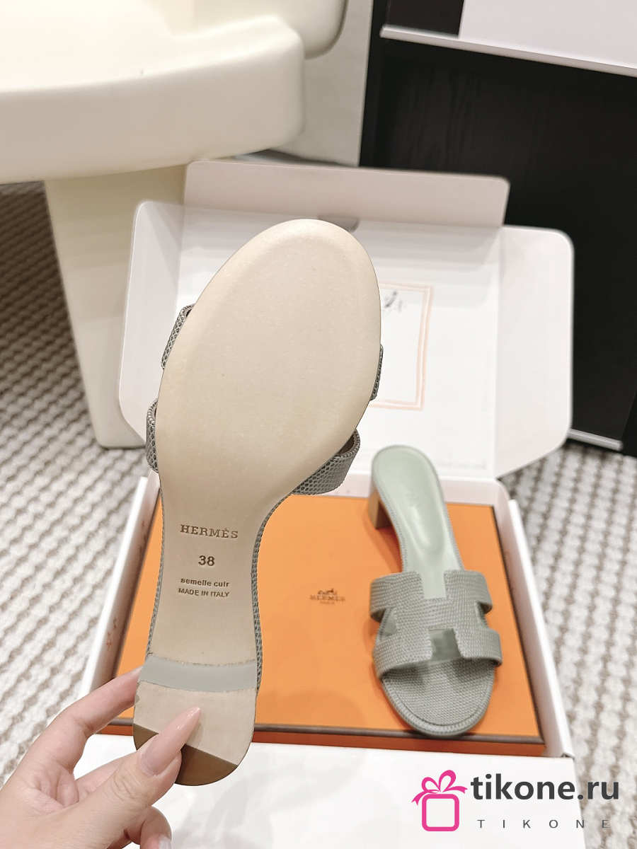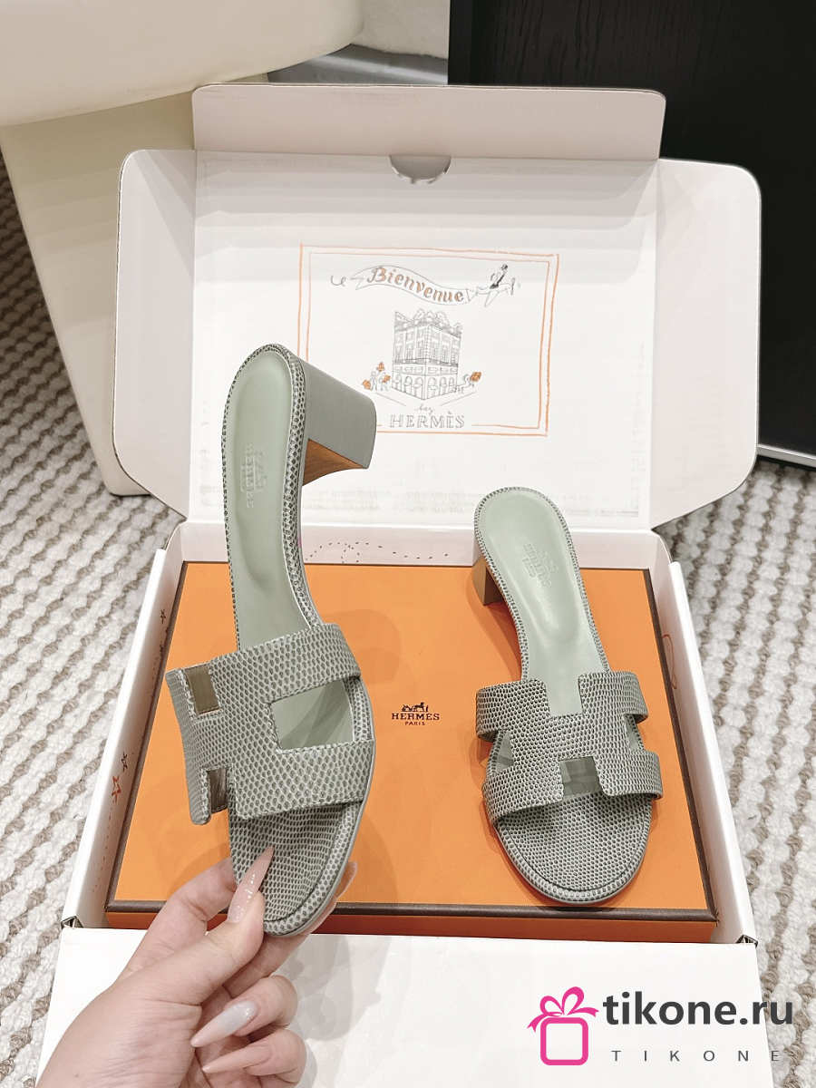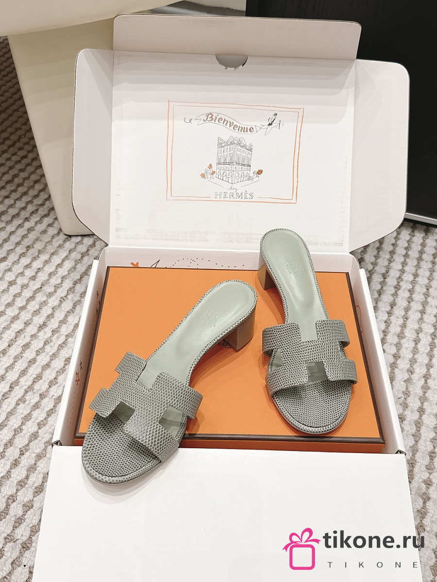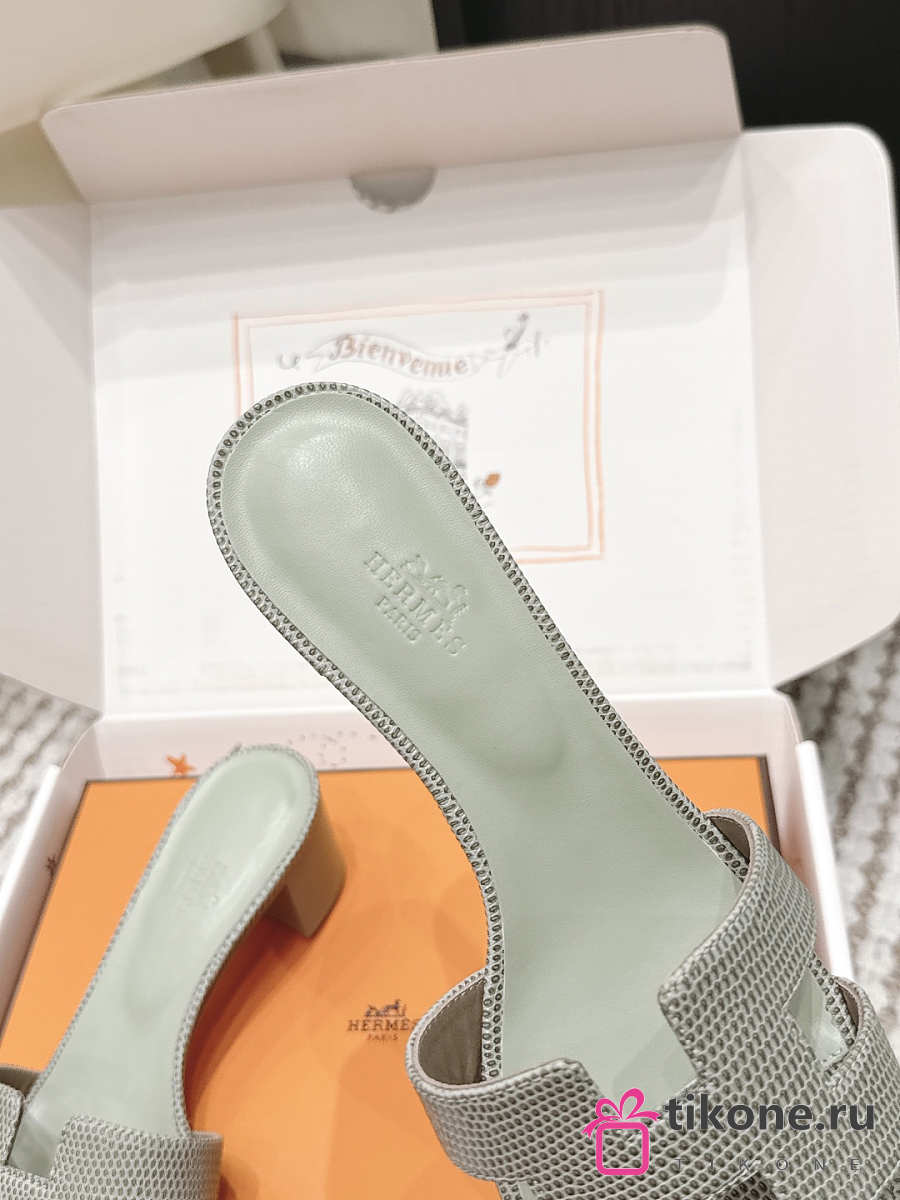 Hermes Oasis Sandal Shiny Lizard Gray 5cm