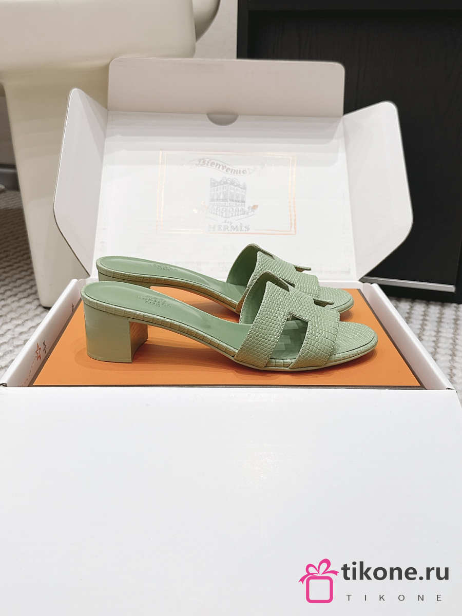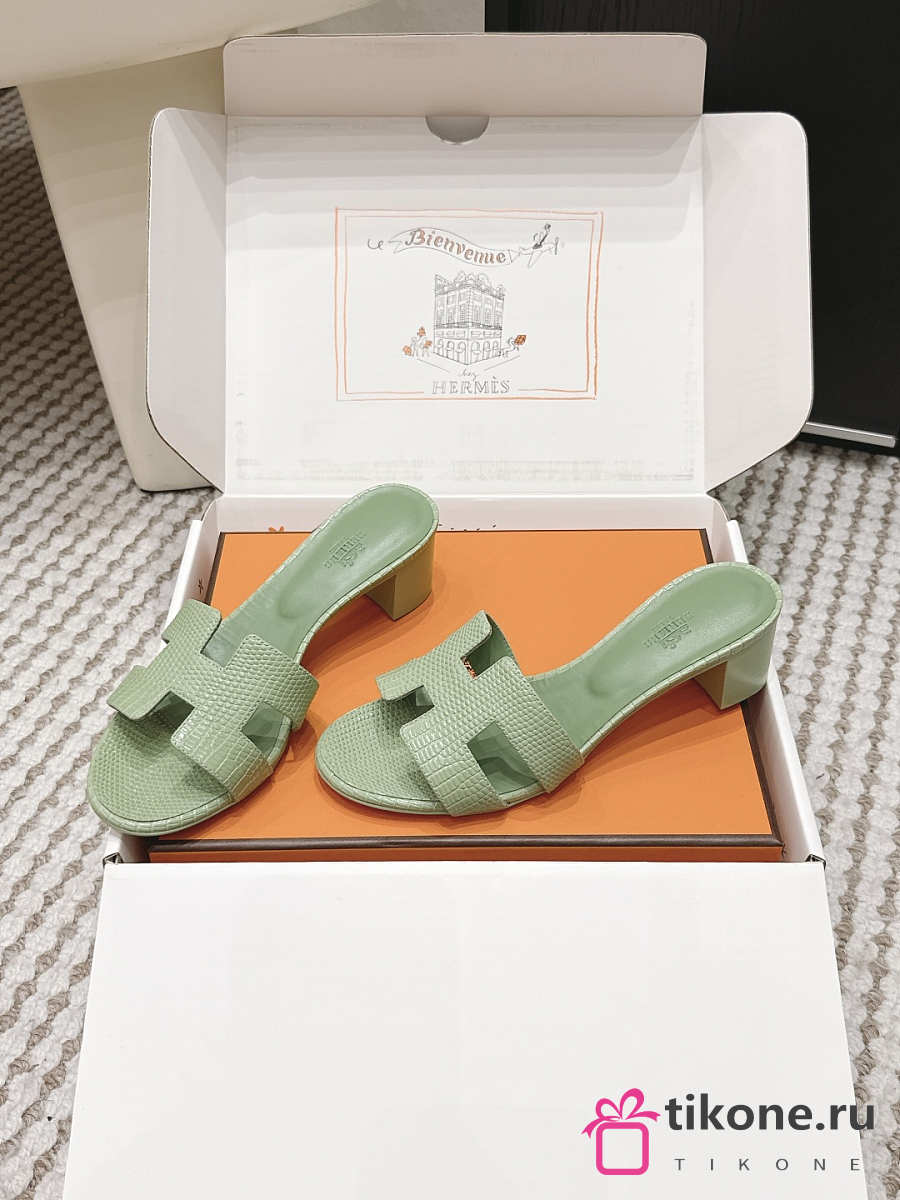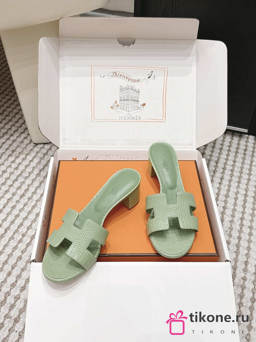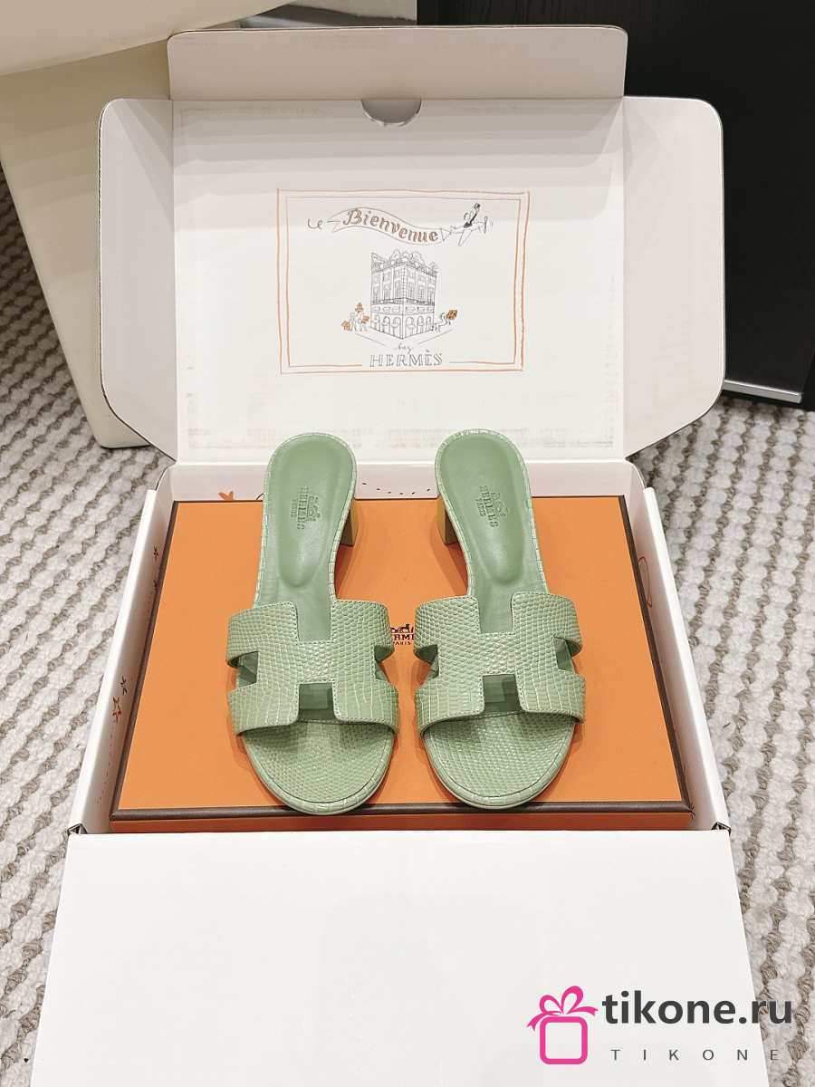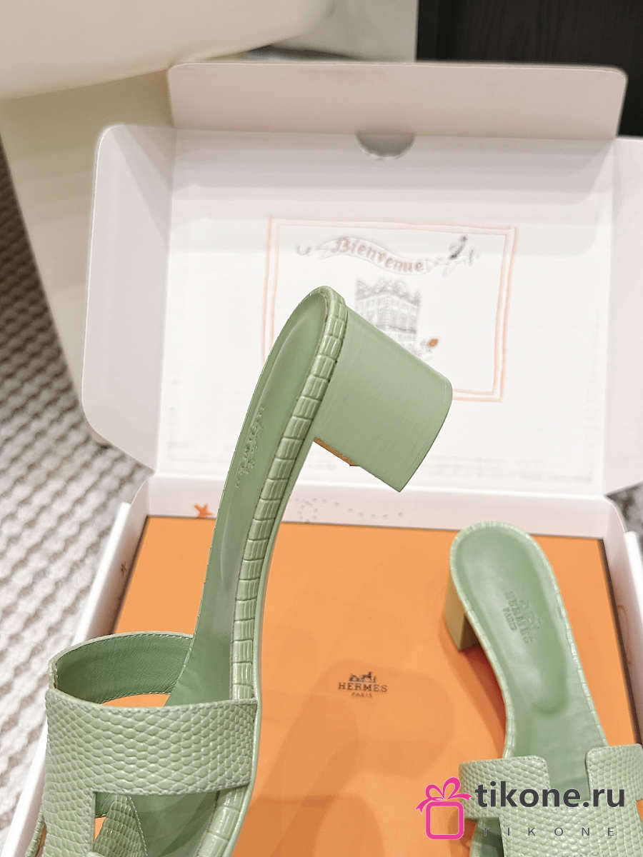 Hermes Oasis Sandal Shiny Lizard Light Green 5cm