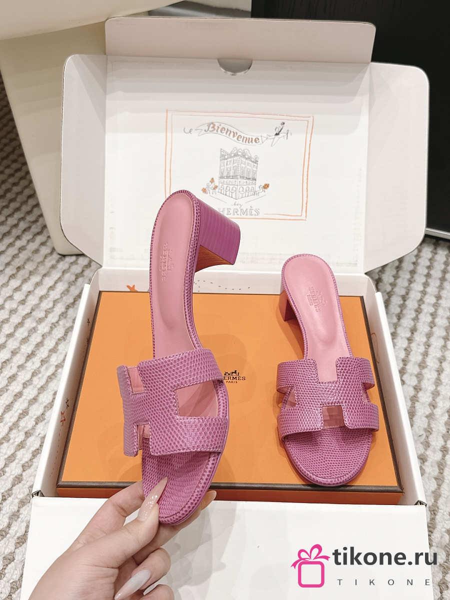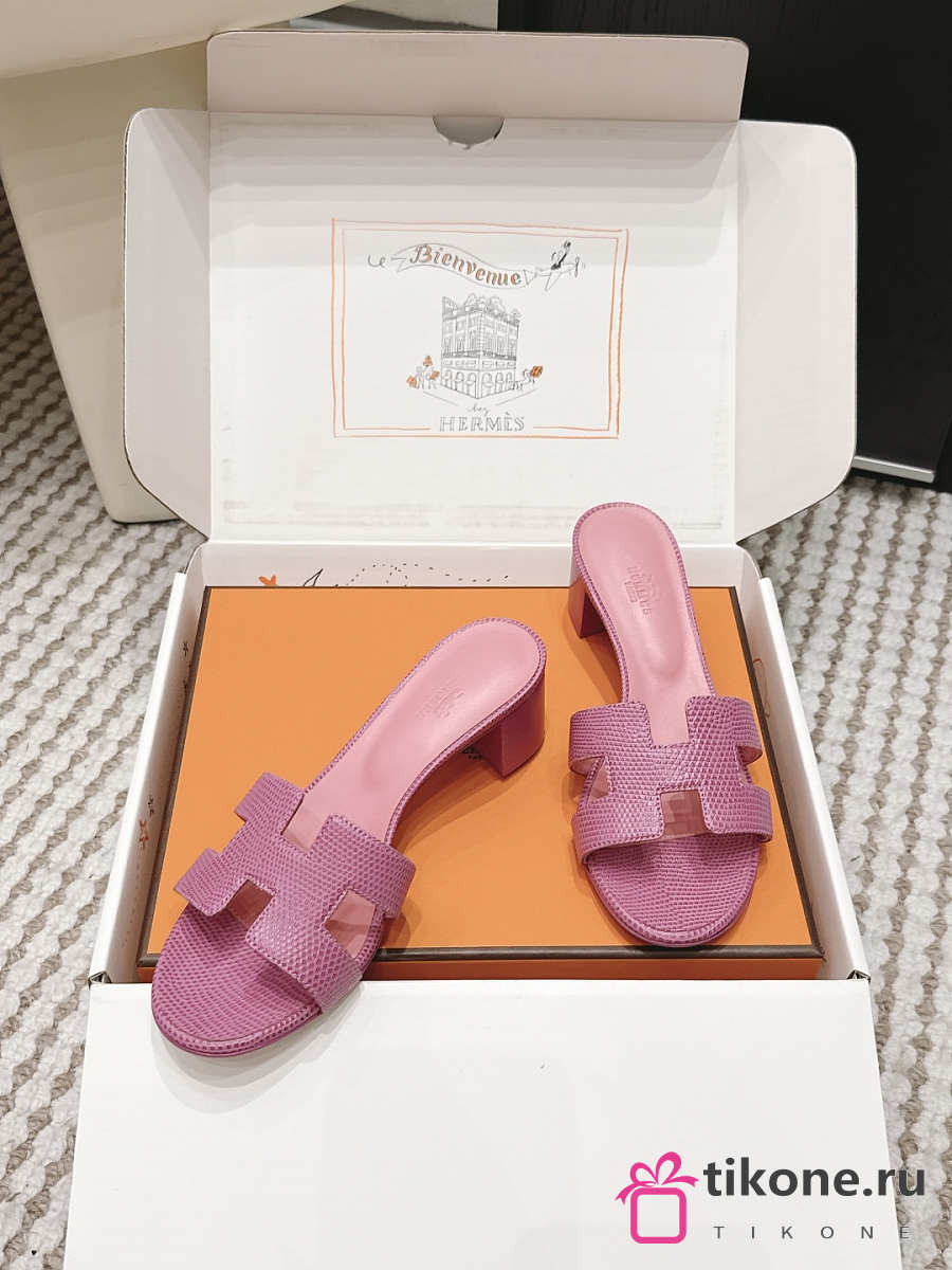 Hermes Oasis Sandal Shiny Lizard Pink 5cm