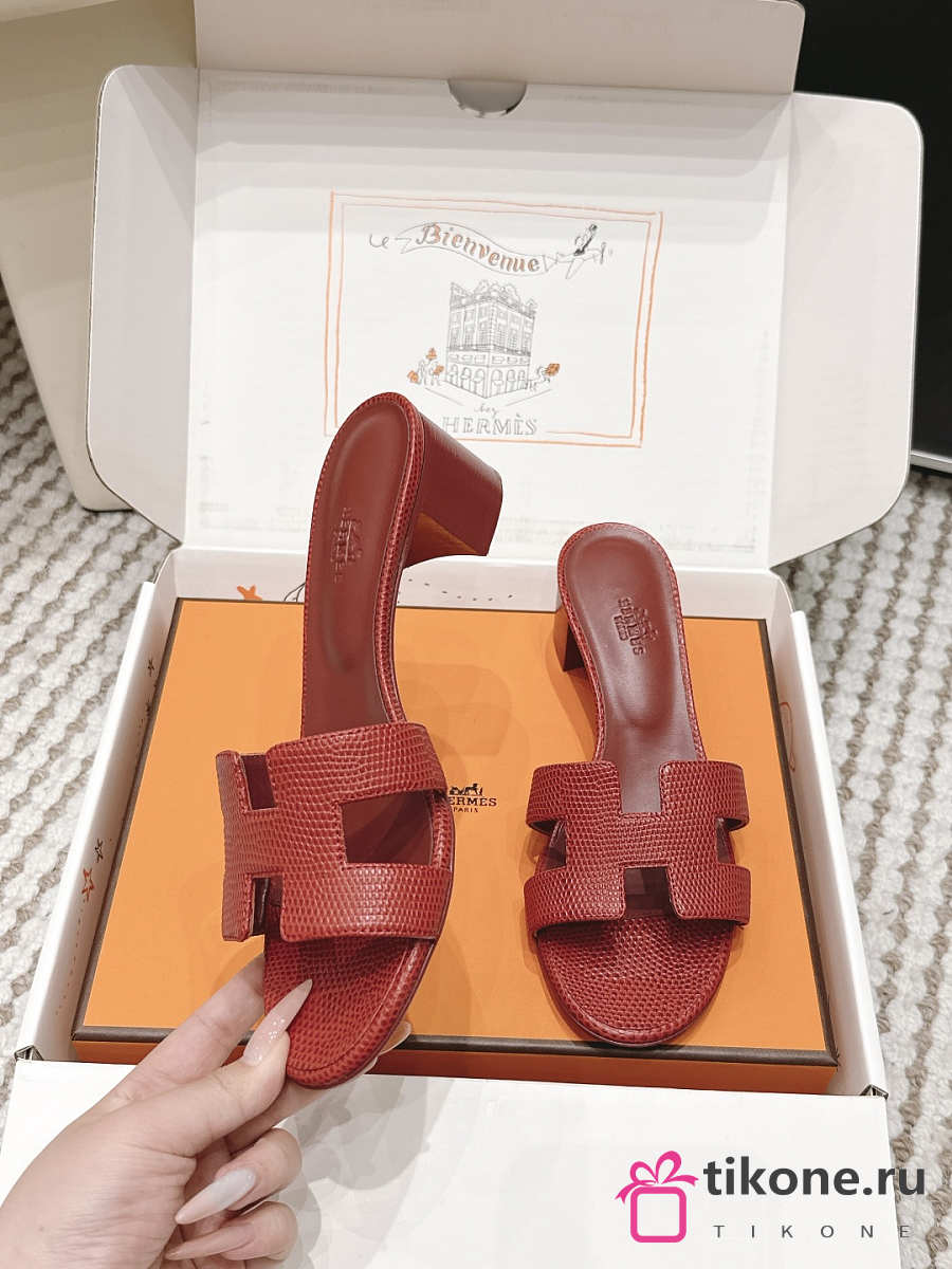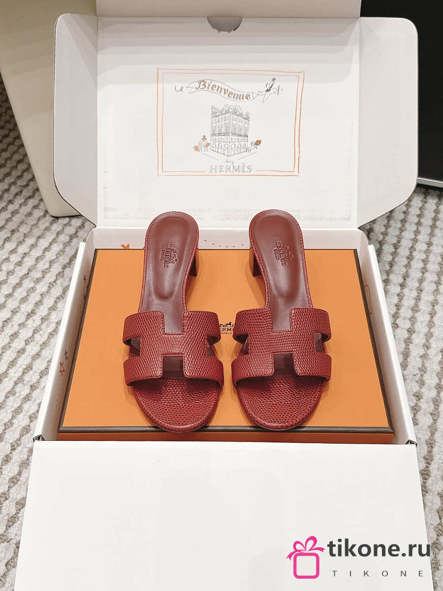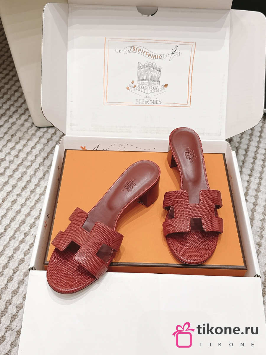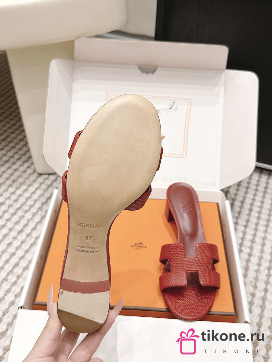 Hermes Oasis Sandal Shiny Lizard Red 5cm