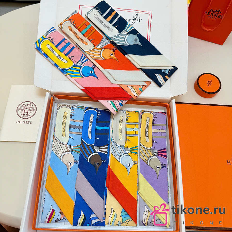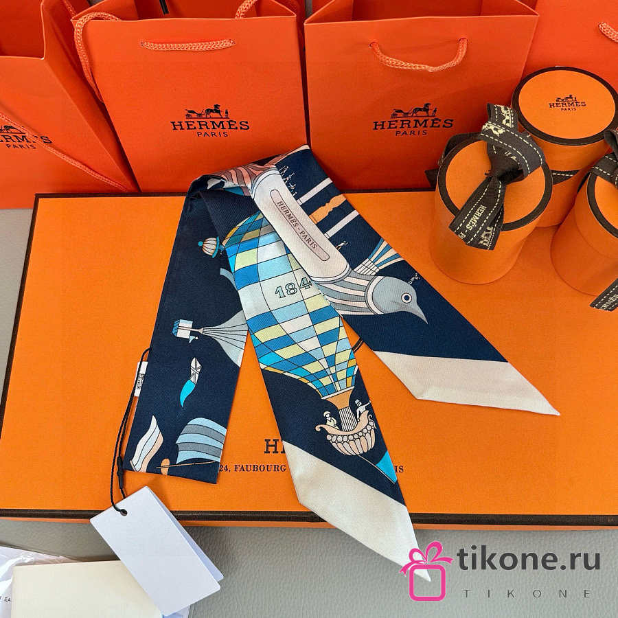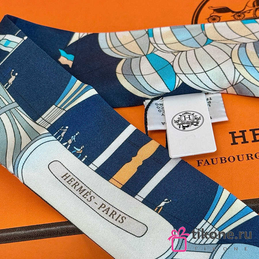 Hermes Silk Les Folies Du Ciel Twilly Navy - 5x86cm
