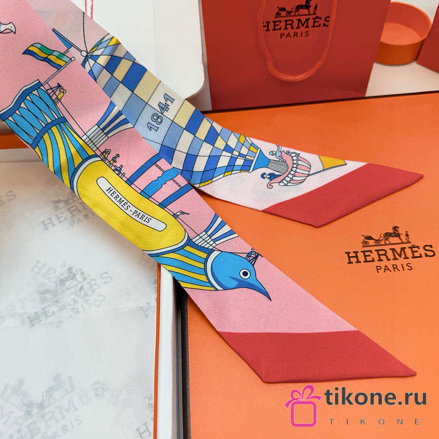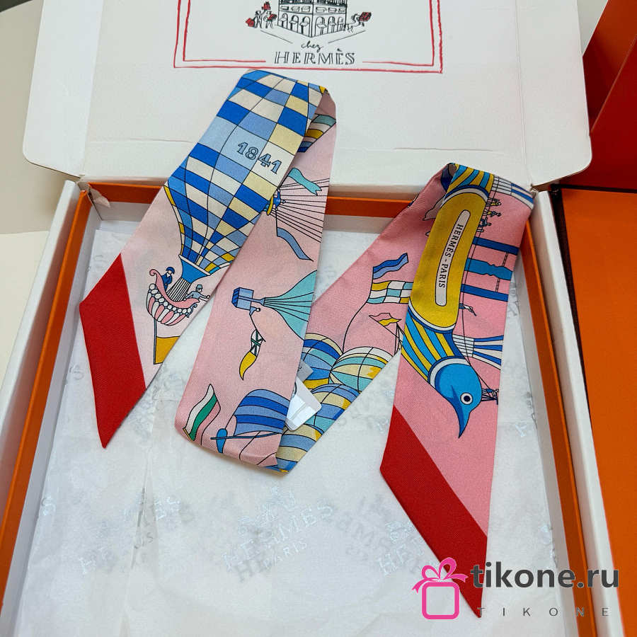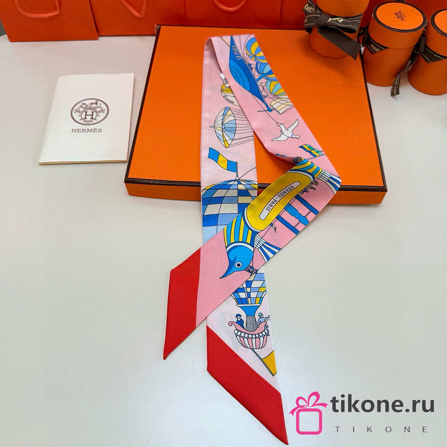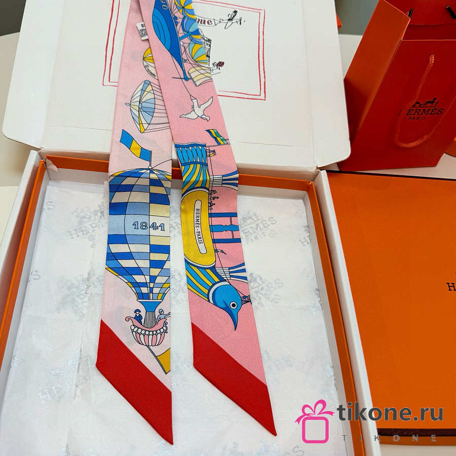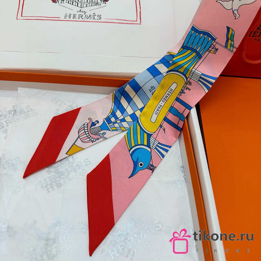 Hermes Silk Les Folies Du Ciel Twilly Red - 5x86cm