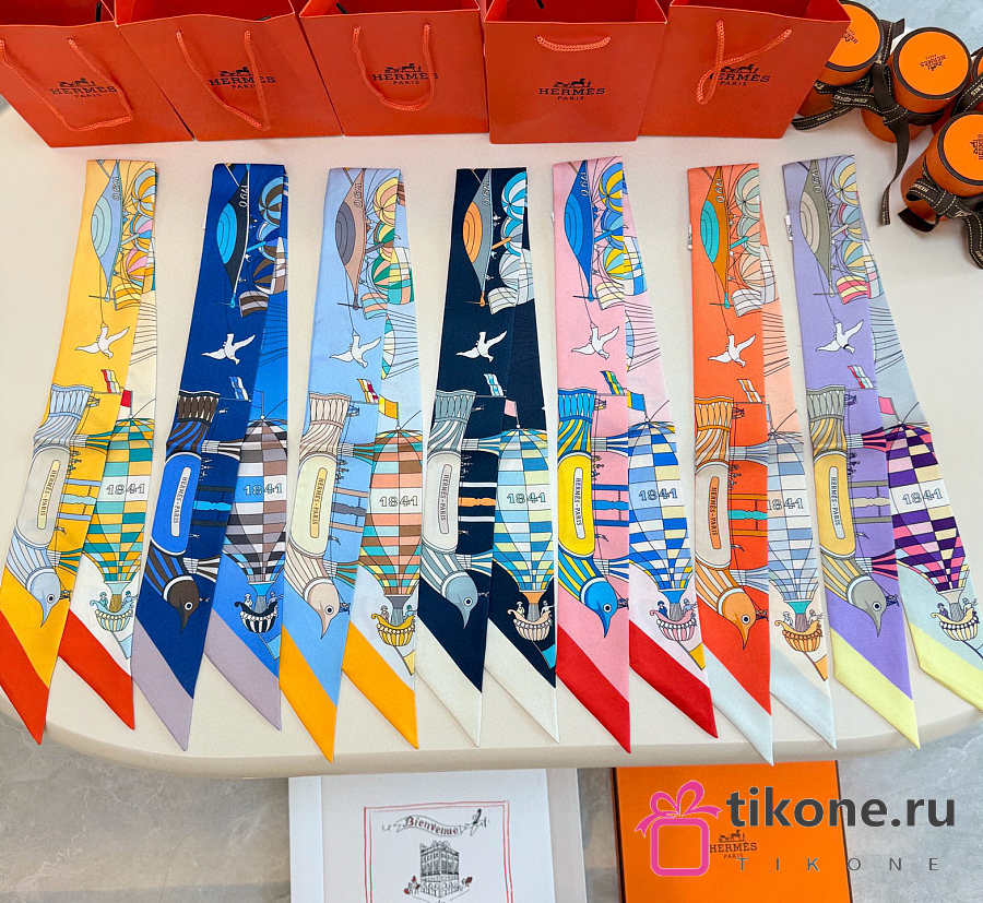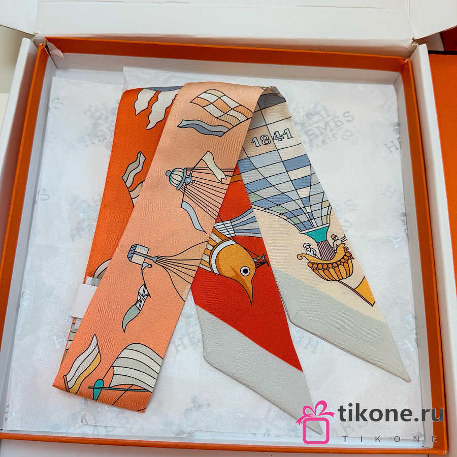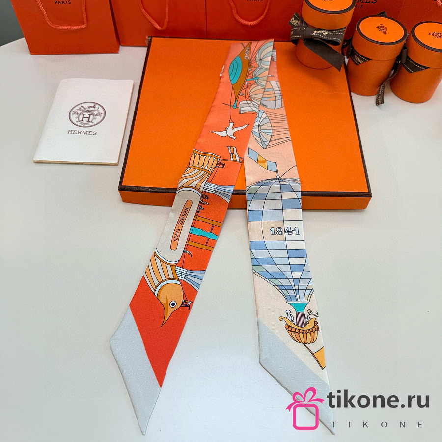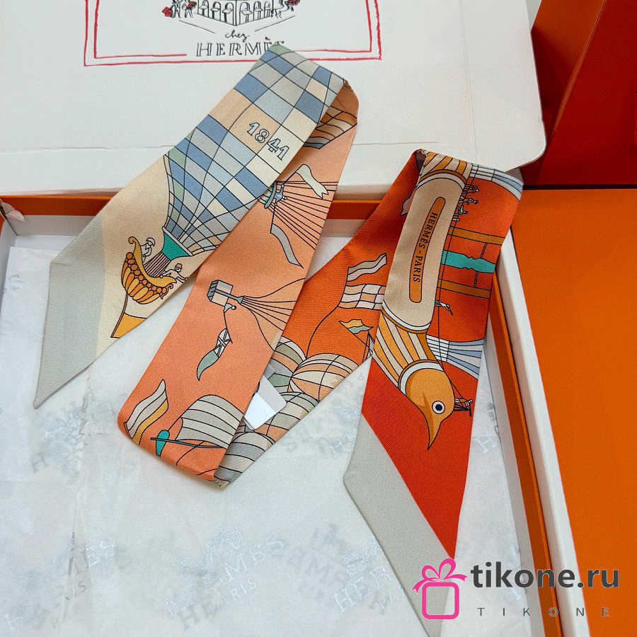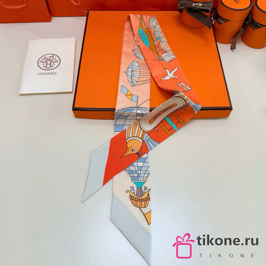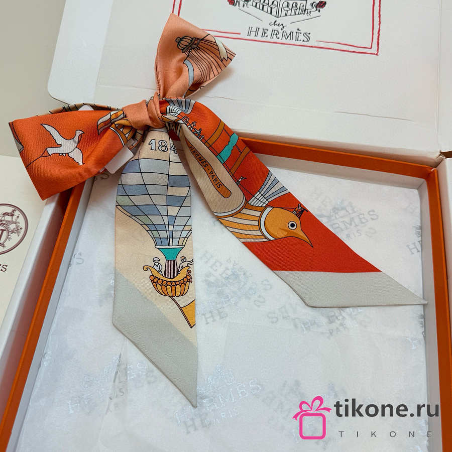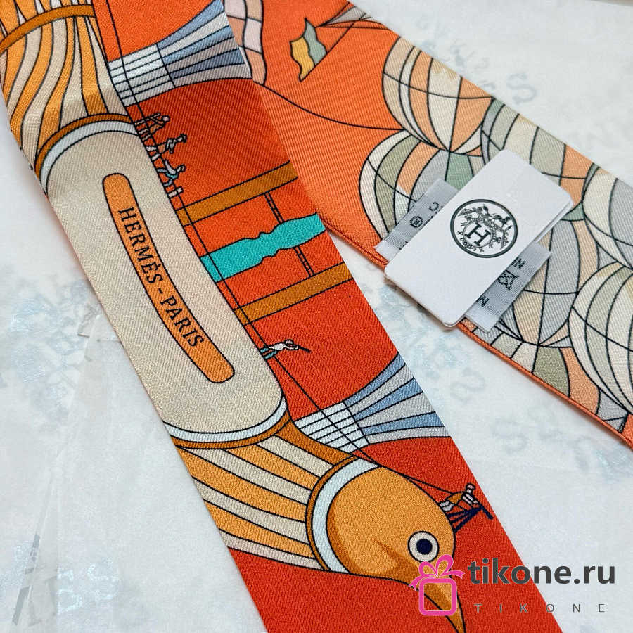 Hermes Silk Les Folies Du Ciel Twilly White- 5x86cm