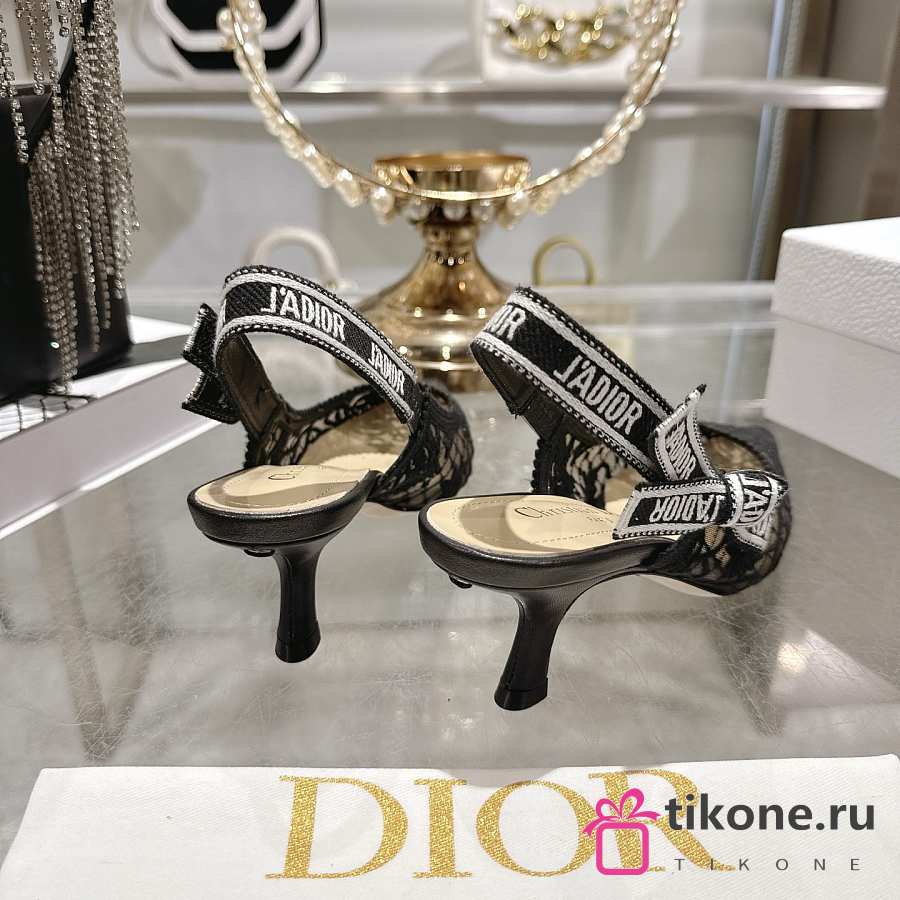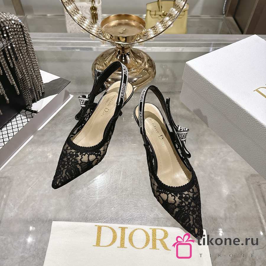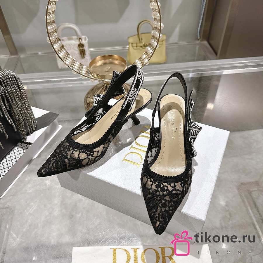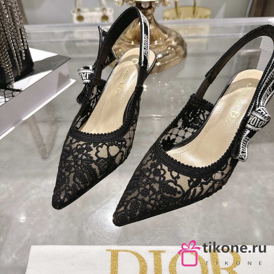 J'Adior Slingback Pump Transparent Mesh Embroidered with Black Millefiori Motif 6.5cm