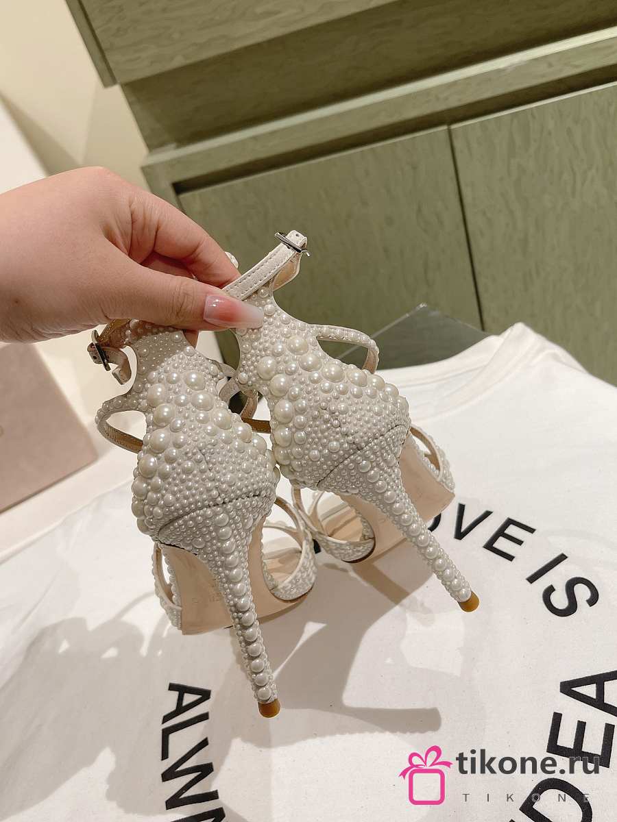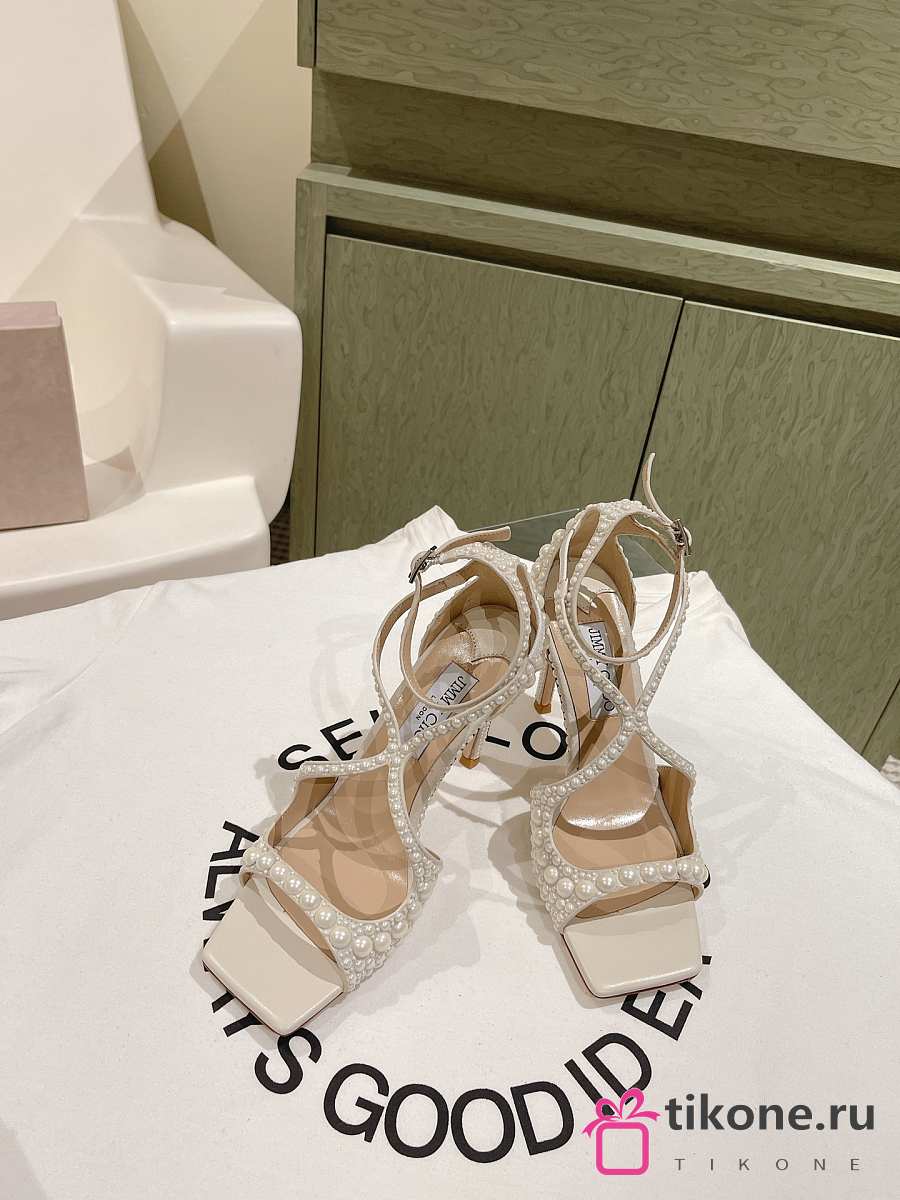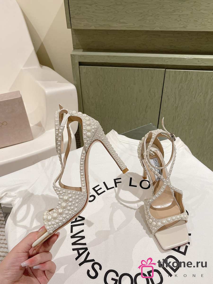 Jimmy Choo Azia 95mm Pearl-embellished Sandals White