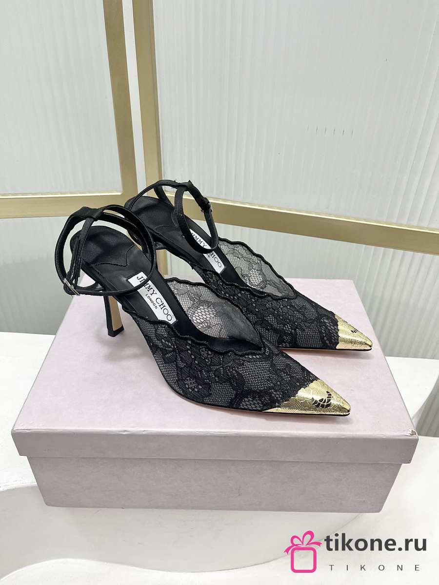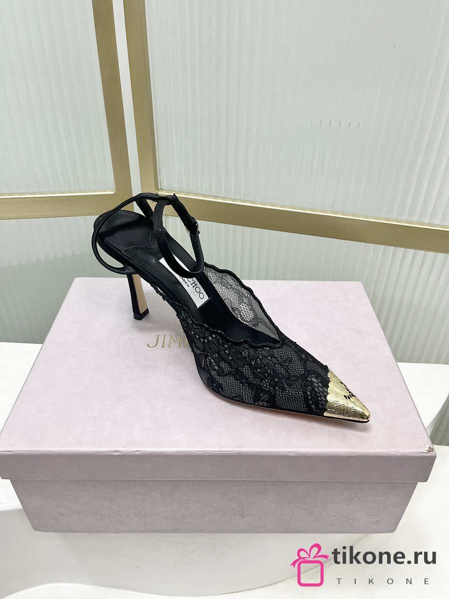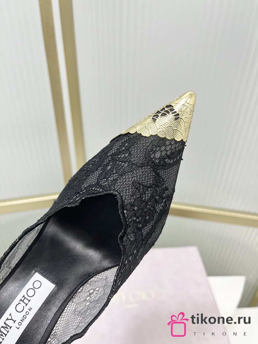 Jimmy Choo Faiz 100 Lace Pumps with Metal Lace Black/Gold