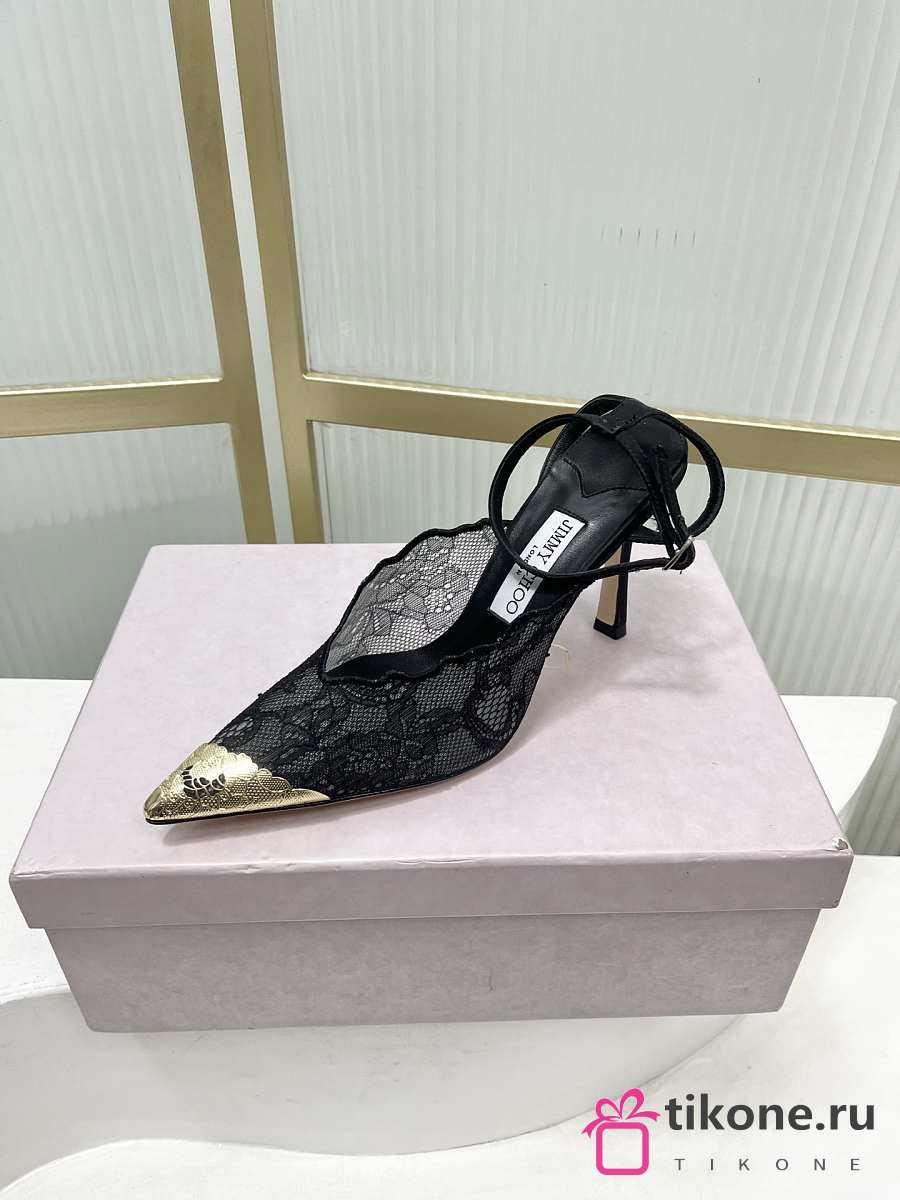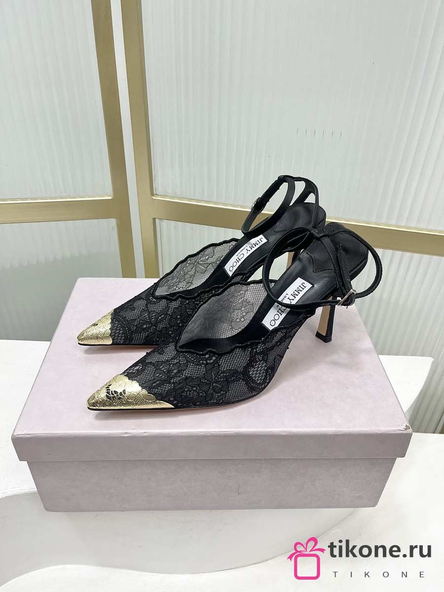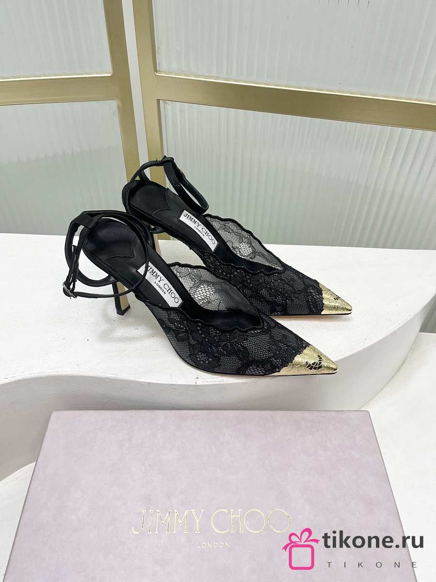 Jimmy Choo Faiz 100 Lace Pumps with Metal Lace Black/Gold
