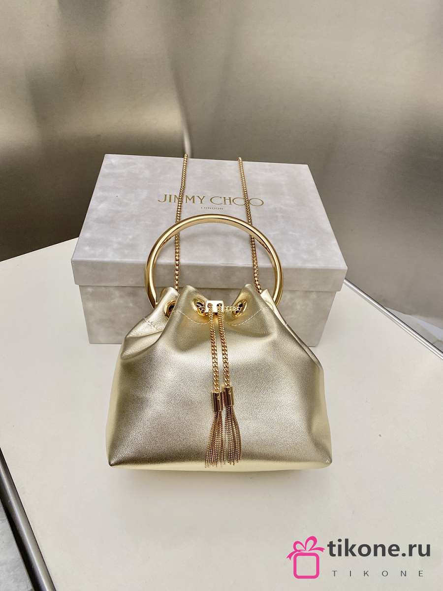 Jimmy Choo Nappa Mini Bag Micro Bon Bon Gold Metallic - 16x16x9cm