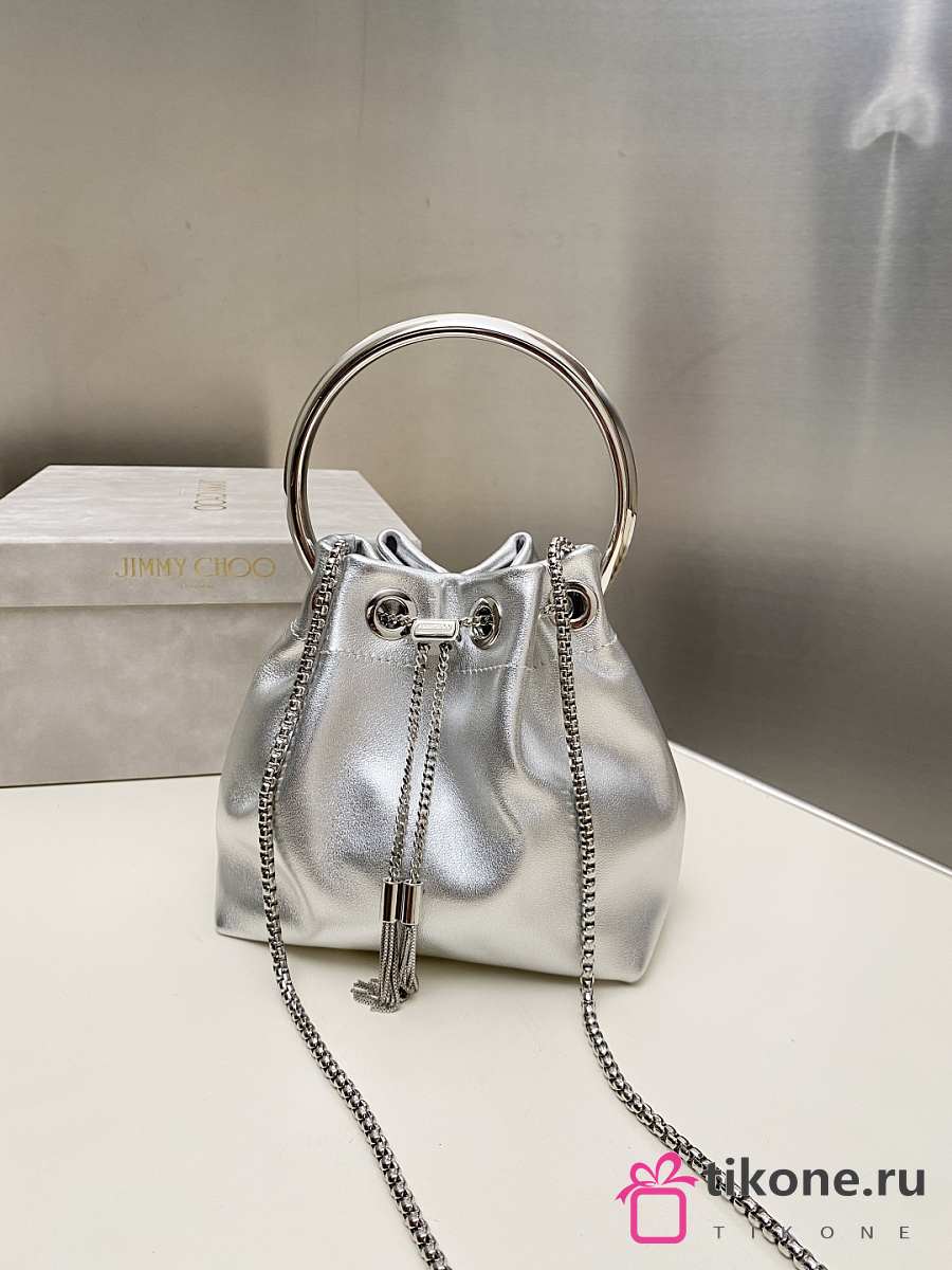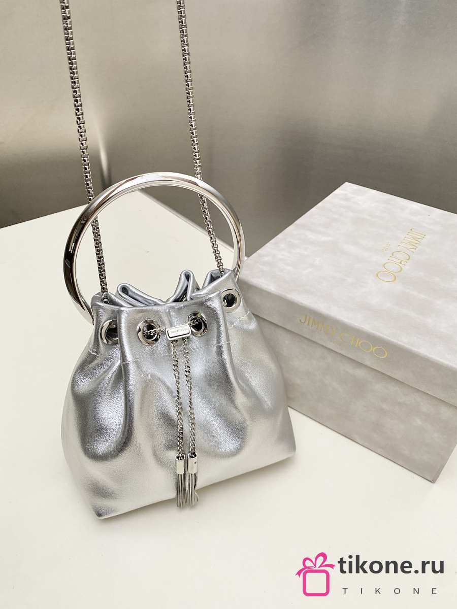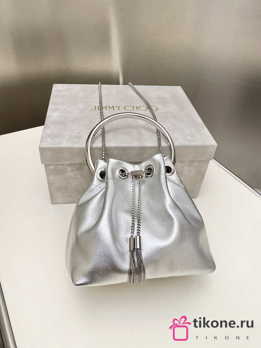 Jimmy Choo Nappa Mini Bag Micro Bon Bon Silver Metallic - 16x16x9cm