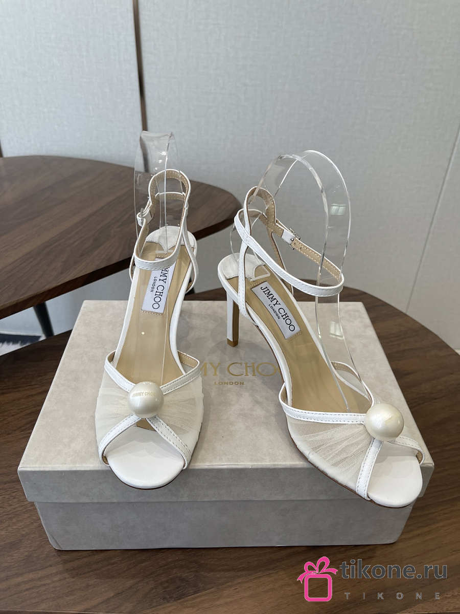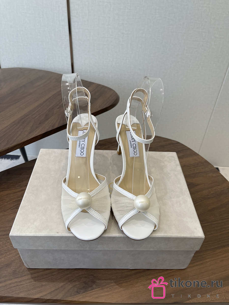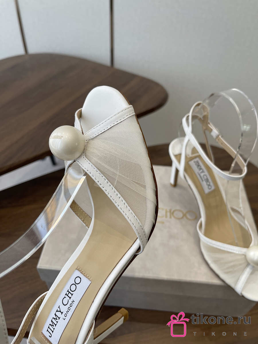 Jimmy Choo Sacaria 85 Ivory Tulle Sandals with Pearl Detail